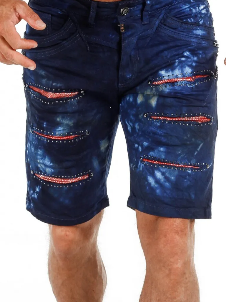 Jeansshorts Med Et Råt Design Fra Cipo &Amp; Baxxbatikmønstrede Shorts I Mørkeblå, Hvid Og Grøn, Med Nitter I Metal…