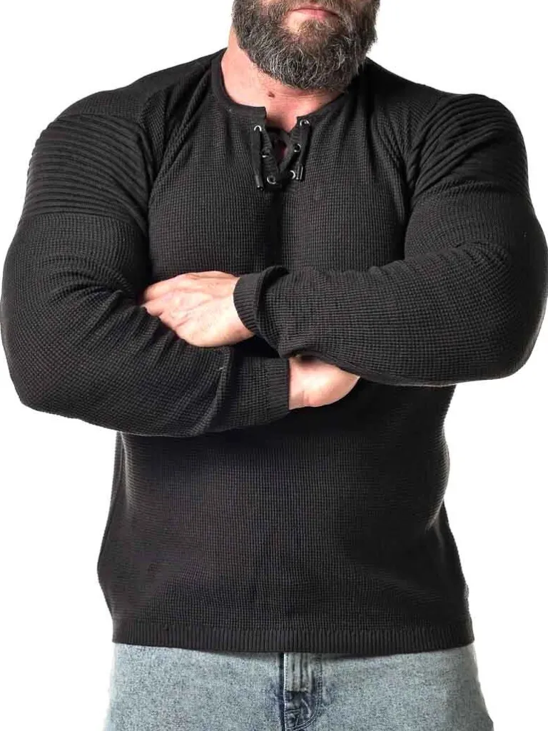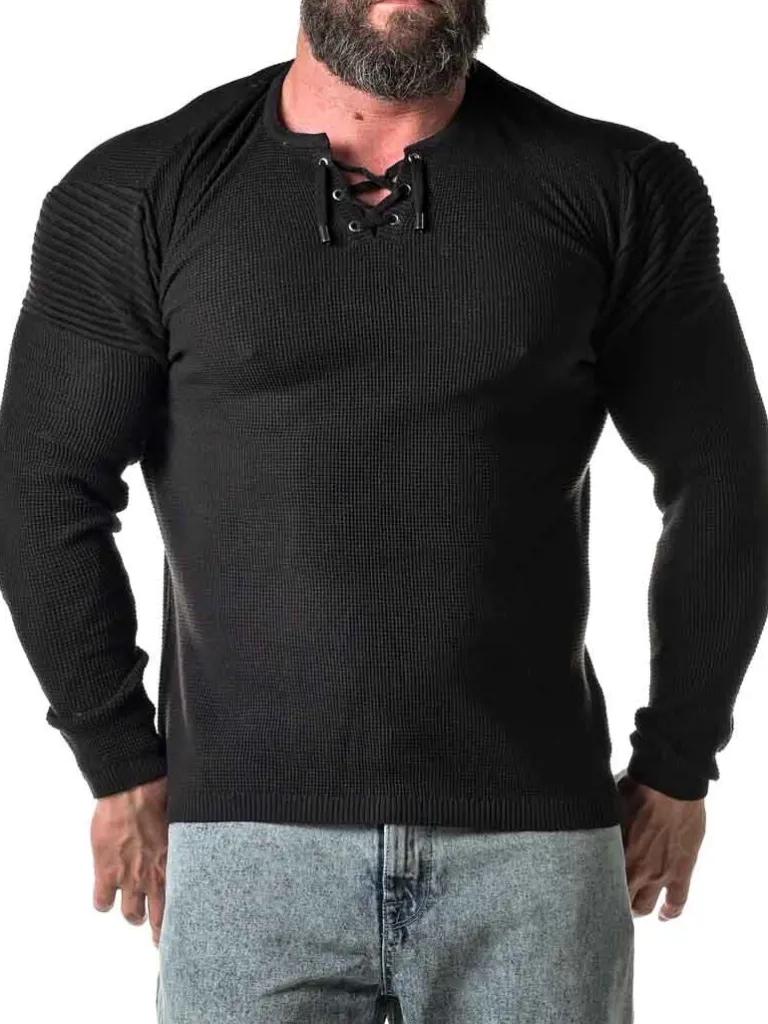 Trøje Med Snøring Fra Carismafinstrikket Trøje I Et Meget Elastisk Materiale. Denne Trøje Er Designet Med Striber På Ærmerne Og Snøring Fortil Ved Halsens Åbning.