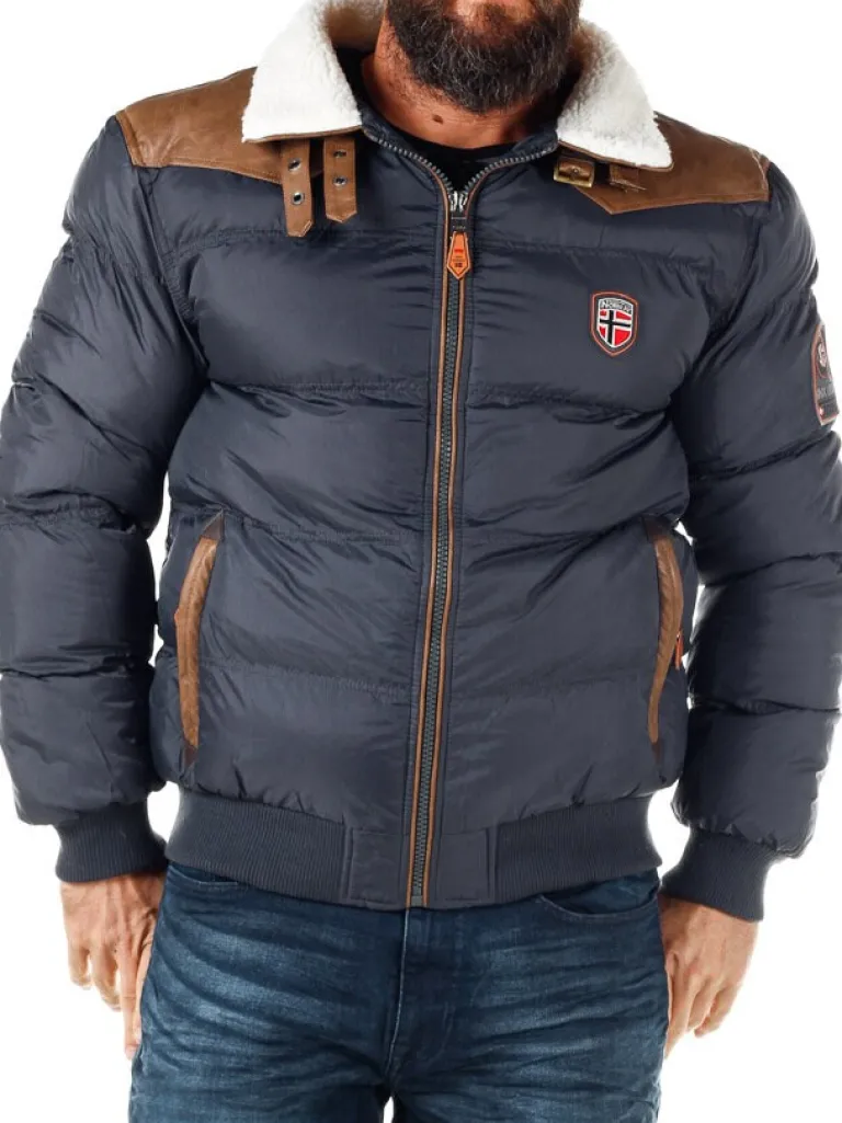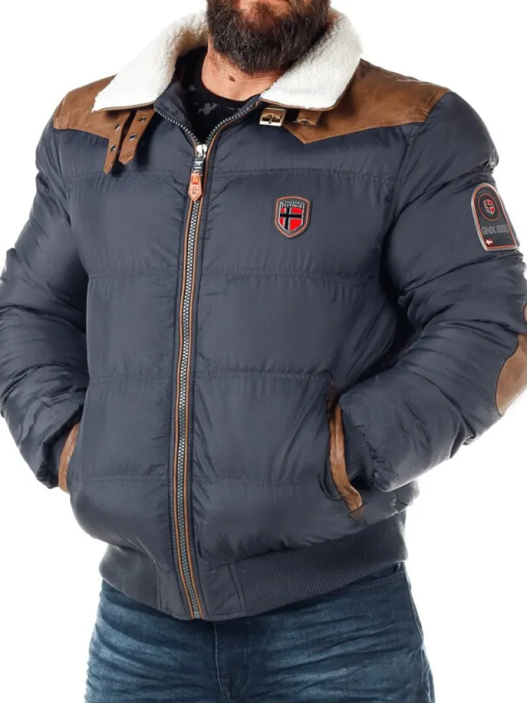Cool Vinterjakke Fra Geographical Norway. Findes Kun På !Jakken Har En Maskulin Pasform I Stilsikre Farver Med Detaljer, Der Kommer I En Imitation Af Skind På Skuldre Og Albuer. To Lommer Ved Taljen Og To På Indersiden. Med Denne Jakke Kan Du Garanteret Beholde Både Stil Og Varmen Til Vinter!