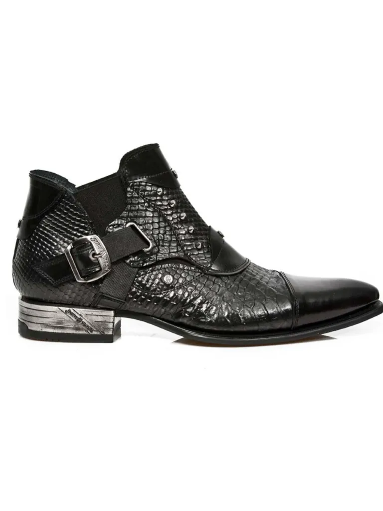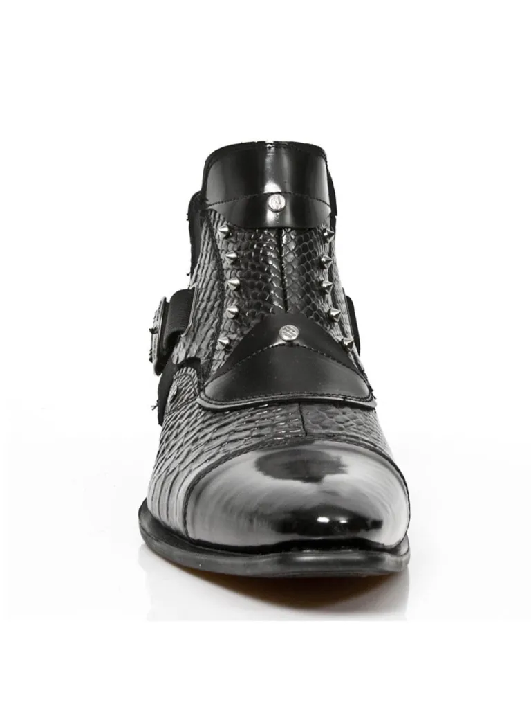 Lave Støvler Fra New Rocksorte Sko I Ægte Læder Med Mønster Og Lavt Skaft. Detaljerede Med Nitter Og Stropper I Elastik Med Spænde I Metal. Elastik Ved Skaftets Åbning, På Begge Sider, Hvilket Gør Det Lettere At Tage Dem Af Og På. Denne Unikke Sko Findes I Et Begrænset Oplag!
