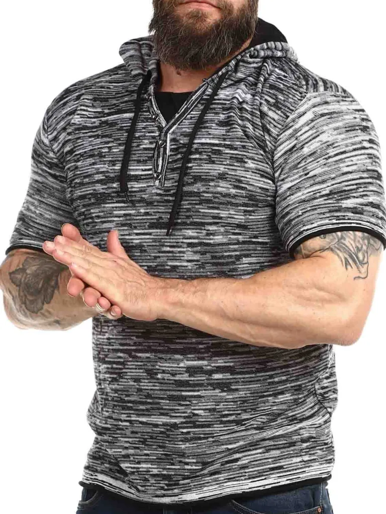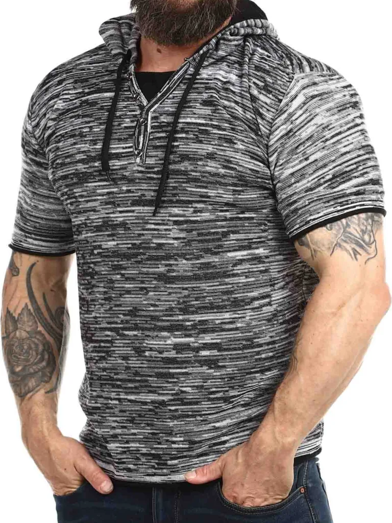 Finstrikket T-Shirt Fra Carismakortærmet Trøje I Et Strikket Materiale Med Hætte. Den Har Knapper Fortil Ved Halsens Åbning Og Snøring I Hætten. Den Er Fremstillet I Et Tyndt Og Dejligt Materiale.