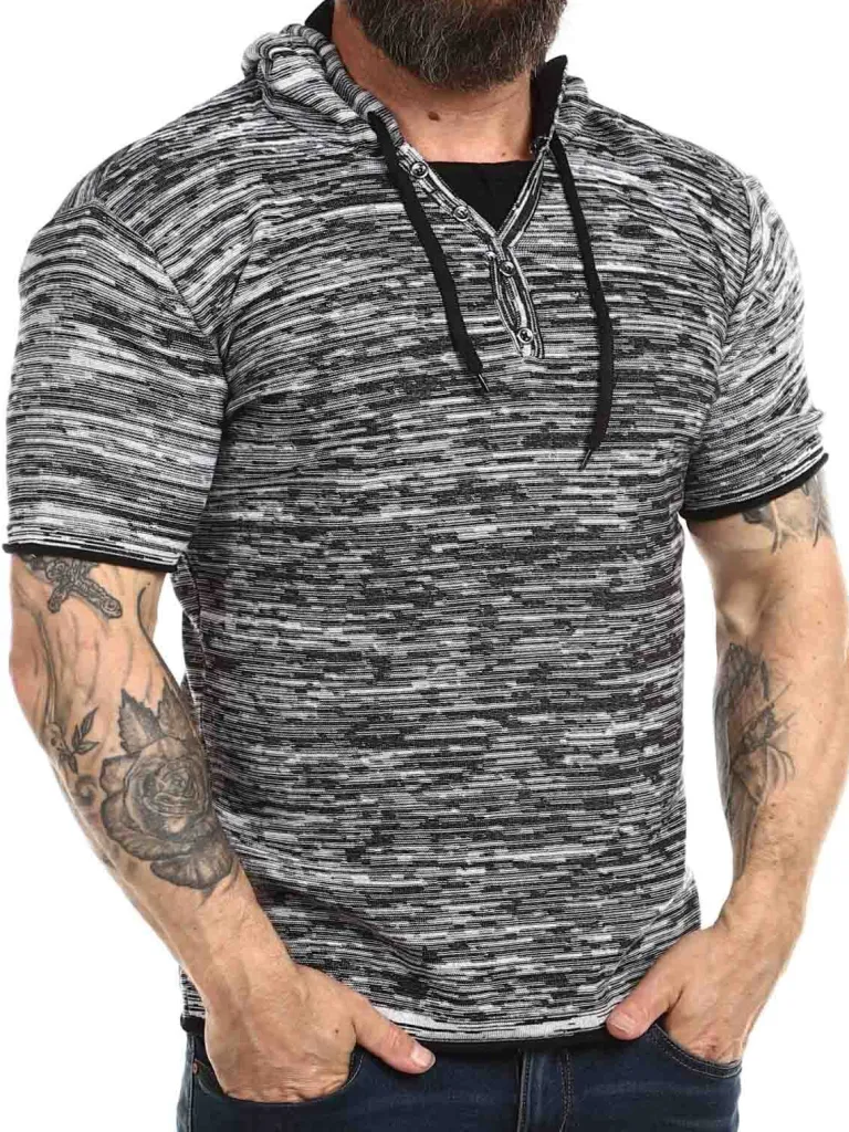 Finstrikket T-Shirt Fra Carismakortærmet Trøje I Et Strikket Materiale Med Hætte. Den Har Knapper Fortil Ved Halsens …