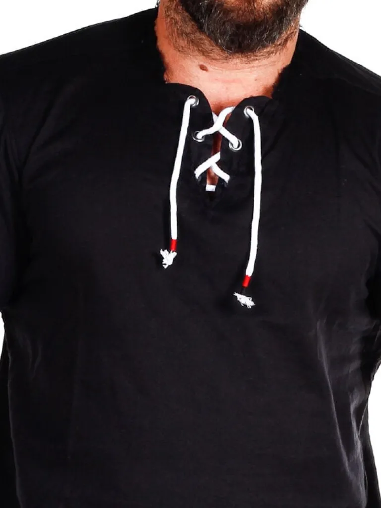 Kortærmet Skjorte Fra Carismatræk-På-Skjorte Med Korte Ærmer, Der Kommer I En Elastisk Blanding Af Bomuld. Denne Skjorte Har En V-Udskæring I Halsen, Hvor Der Også Findes Snøring Samt En Afrundet Linning Forneden Med En Rå Kant.