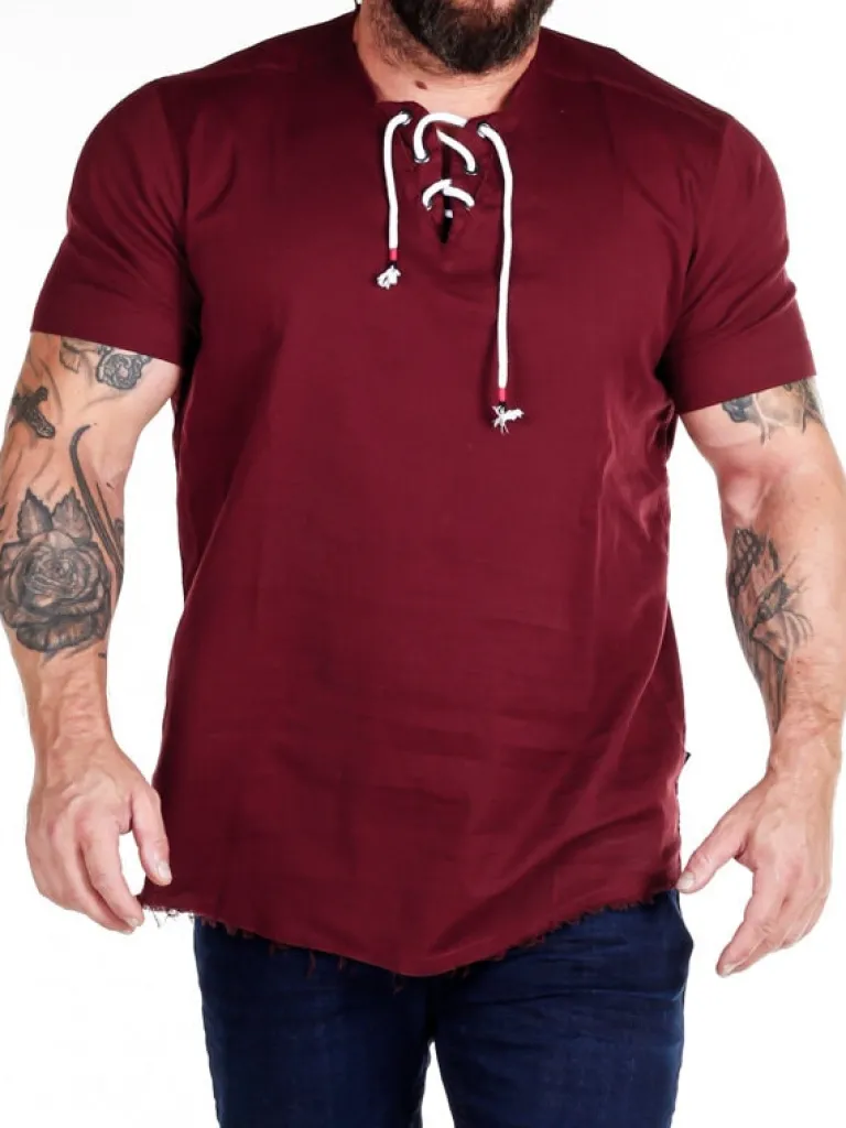 Kortærmet Skjorte Fra Carismatræk-På-Skjorte Med Korte Ærmer, Der Kommer I En Elastisk Blanding Af Bomuld. Denne Skjorte Har En V-Udskæring I Halsen, Hvor Der Også Findes Snøring Samt En Afrundet Linning Forneden Med En Rå Kant.