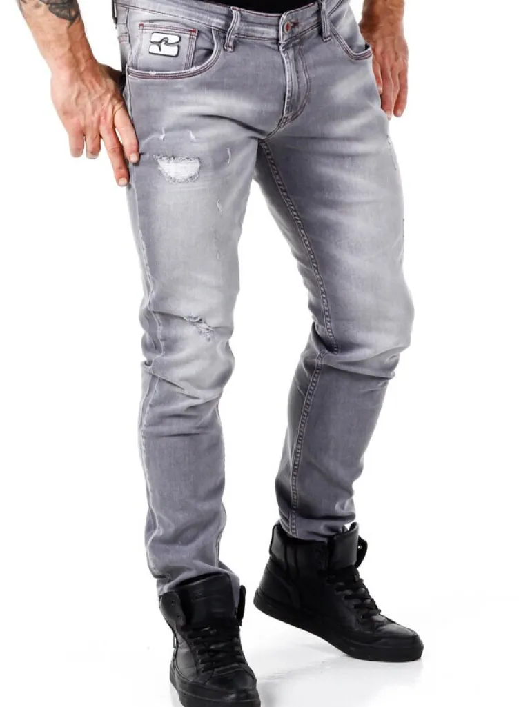 Jeans Med Slitningar Från Rusty Nealbekväma Byxor I Denim Med Slitningar Framtill. Slim Fit-Modell Med Stretch. Tre Framfickor Och Två Bakfickor.