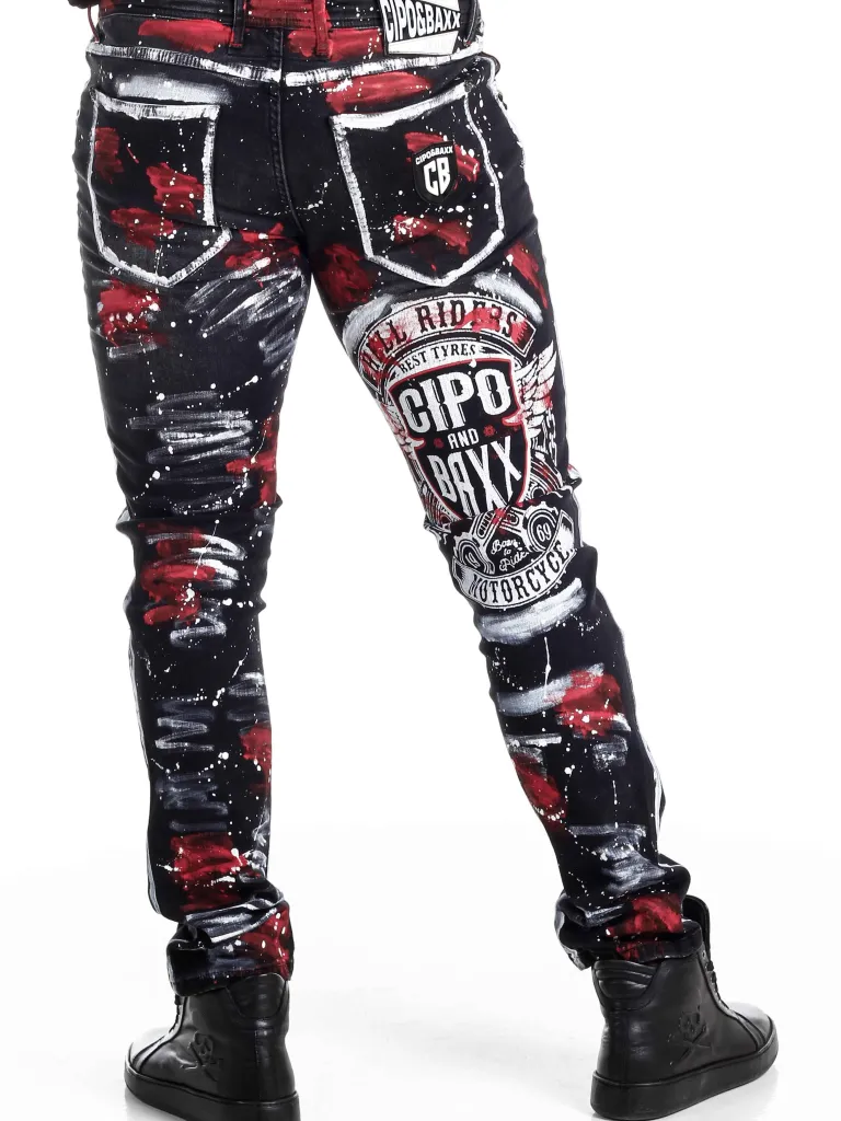 Råa Jeans Från Cipo &Amp; Baxx≪Br≫Unika Byxor Med Svart Bas Och Målade Effekter I Vitt, Rött Och Gult. Designa…