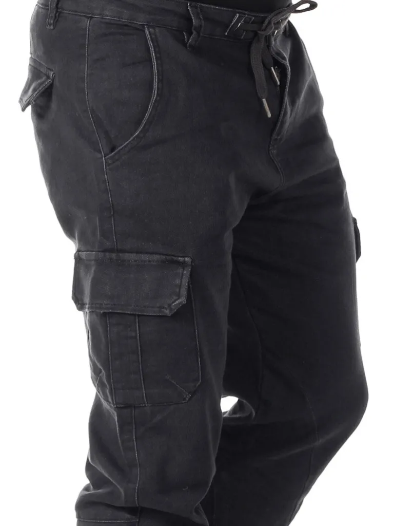 Joggingbukser Fra Urban Classicelastiske Cargobukser I Et Blødt Denim Materiale. De Har To Lommer Bagtil, Der Begge Kan Lukkes. Hertil Kommer To Åbne Lommer Foran, Og To Lommer På Siden Af Lårene, Der Begge Kan Lukkes. Der Findes En Ribbet Kant For Enden Af Benene Samt En Snøring. Der Kommer Dertil En Knap I Taljen.