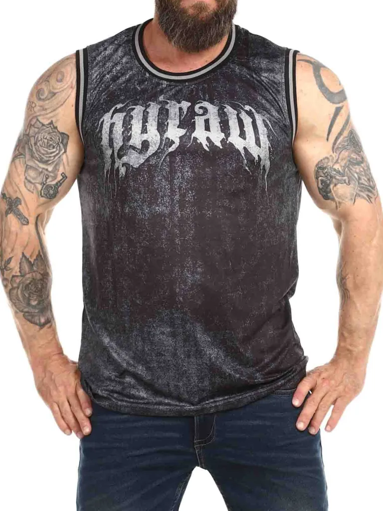 Kølig Tanktop Fra Hyrawbehagelig Tanktop I Et Træningsmateriale, Som Kommer Med En Løs Pasform. Den Har En Afrundet Åbning I Halsen Foroven, Og Hertil Kommer En Elastisk Kant Ved Ærmernes Åbning Og I Halsen.