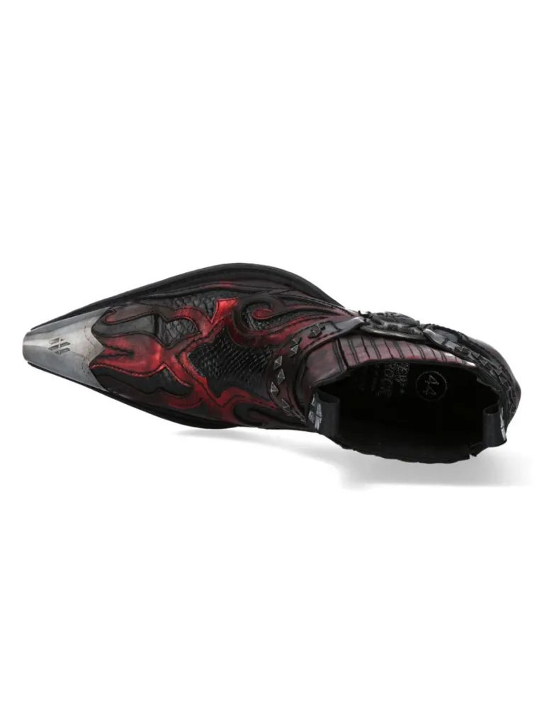 Spidse Støvler Fra New Rockhårde Sko I Ægte Læder Med Detaljer Der Skiller Sig Ud Fra Mængden. De Er Designede Med Et Mønster I Læderet, Nitter Og En Tå Metal, Samt En Hæl. Det Er Et Par Sko, Med Elastik I Skaftet, Som Gør At De Kan Trækkes På. Denne Unikke Sko Findes Kun I Et Begrænset Oplag!