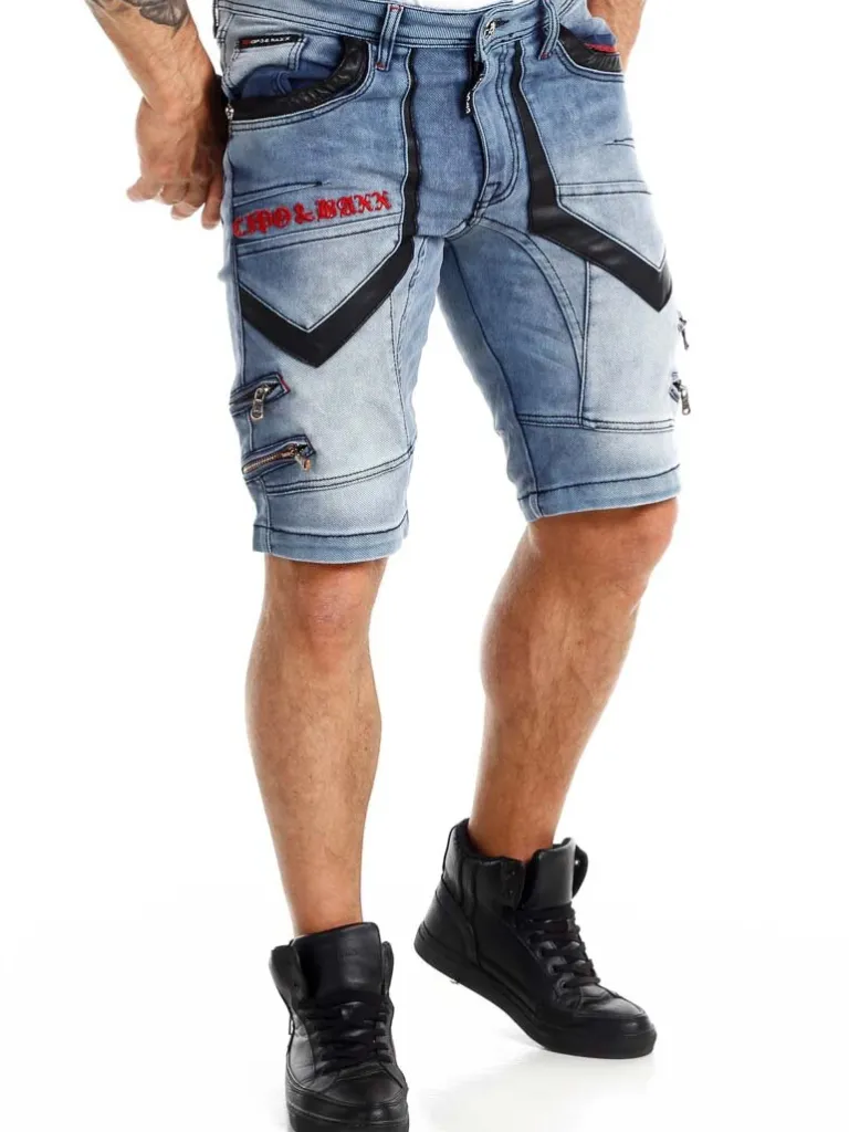 Rå Shorts Fra Cipo &Amp; Baxxshorts I En Elastisk Denim Med En Klassisk Pasform. De Har Fem Lommer Forttil, Samt To Lommer Bagpå. Disse Shorts Har Et Cool Design Med Lynlåse, Knapper Med Dødningehoveder På Samt Detaljer På Imitationen Af Skind.