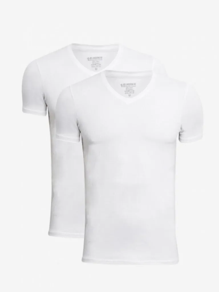 2-Pak T-Shirts Fra Jbst-Shirts I En Blanding Af En Blød Bambus Og Økologisk Bomuld I Den Bedste Kvalitet. Dette Er En Elastisk Model Med En Tætsiddende Pasform Og En V-Udskæring I Halen. De Er Noget Tyndere I Kvaliteten, Så De Kan Bæres Under Skjorten Eller En Strikket Trøje.