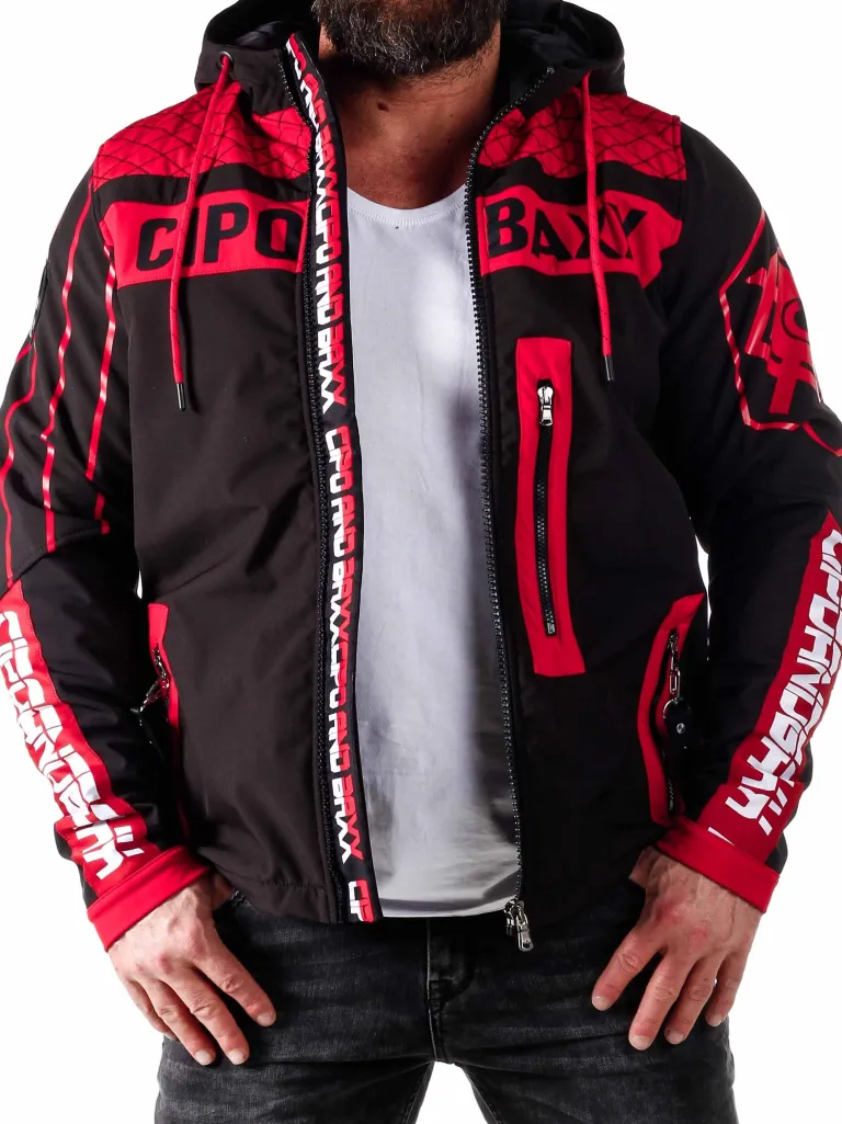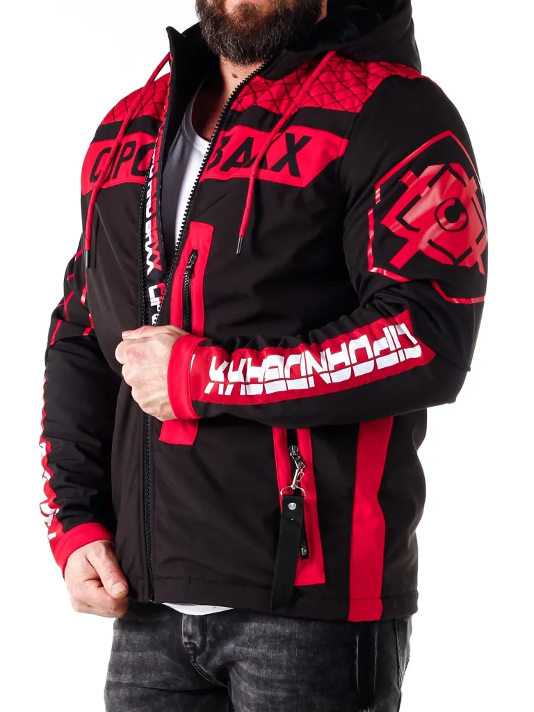 Cool Jakke Fra Cipo &Amp; Baxxlet Foret Jakke Med Et Logo Påtrykt. Den Har To Lommer Fortil Med En Lynlås, Samt En Lynlås For Enden Af Ærmerne. Den Er Designet Med En Hætte, En Ribbetave Og Cool Detaljer.