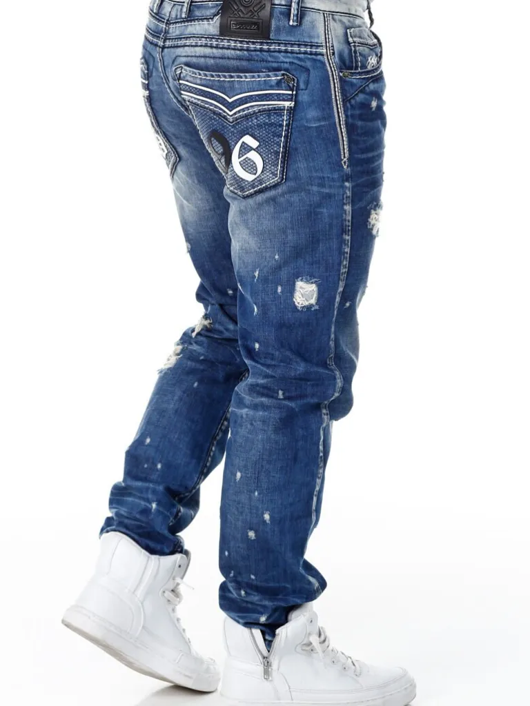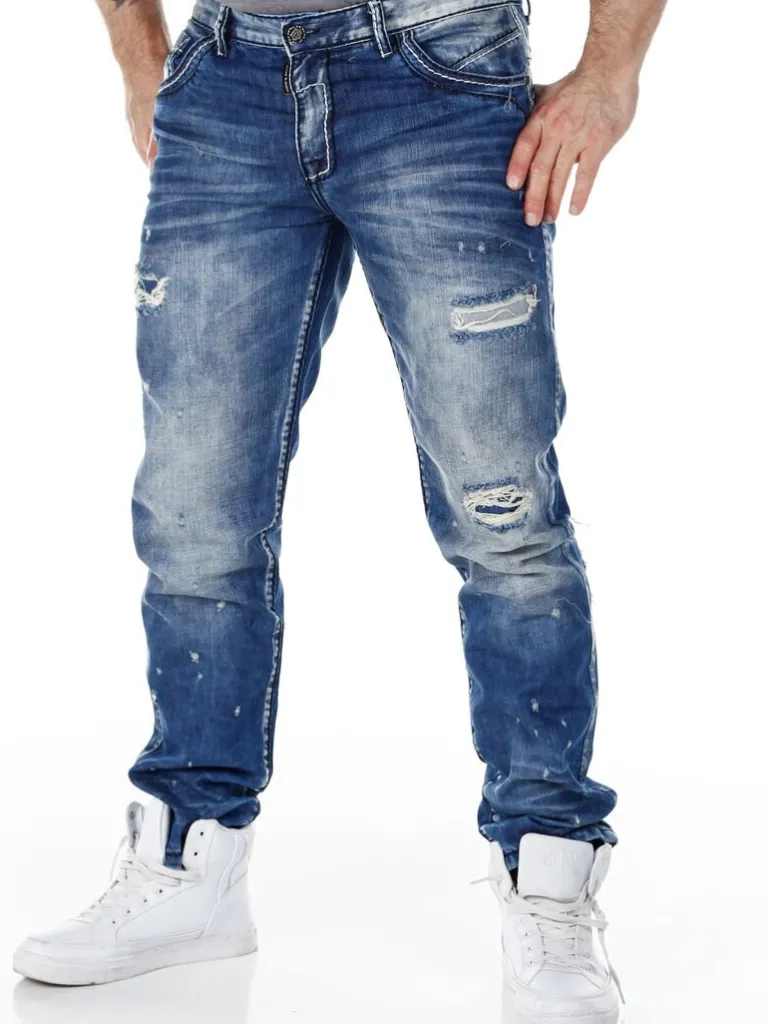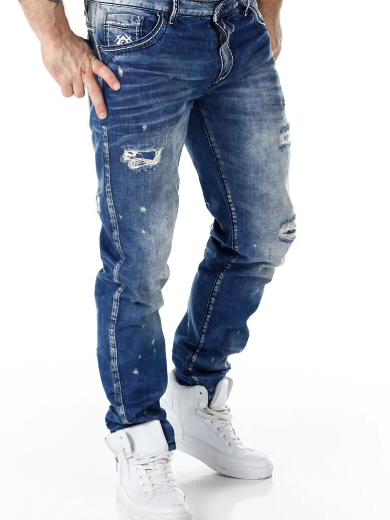 Jeans Med Slitage Fra Cipo &Amp; Baxxstenvaskede Bukser Med Cool Slidte Dele Og Markerede Sømme. Detaljerede Med Lapper…