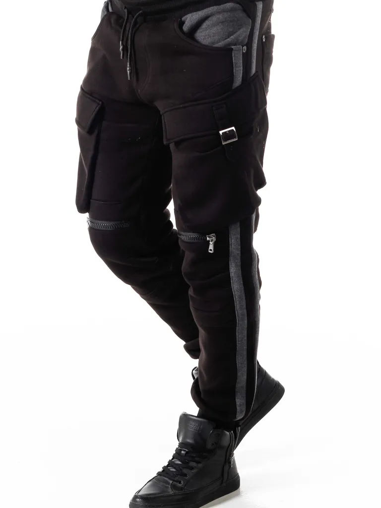 Sweatpants Med Cargolommer Fra Cipo &Amp; Baxxbukser I En Afslappet Model Med Striber I En Kontrastfarve. To Lommer Findes Fortil, To Bagpå Og Hertil Er Der To På Benene. Bukserne Er Detaljerede Med Lynlåse På Knæene.