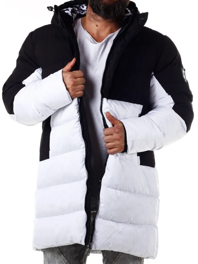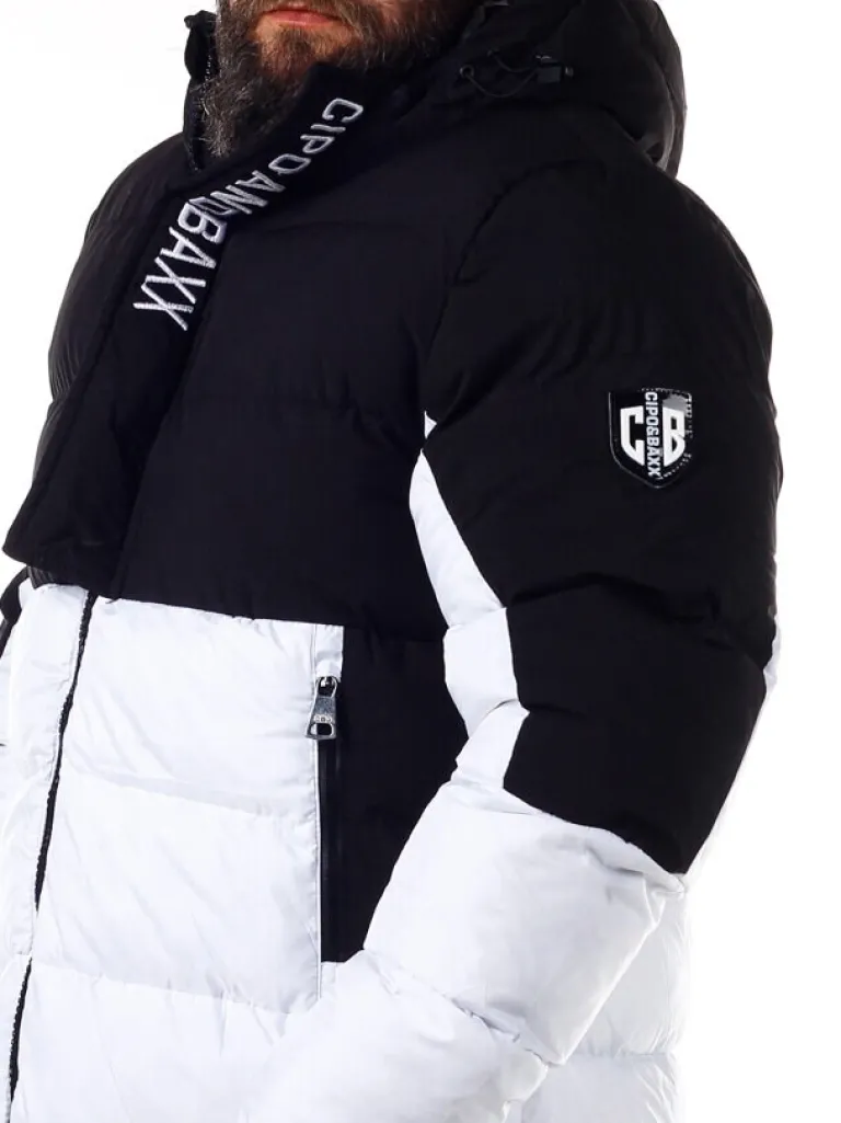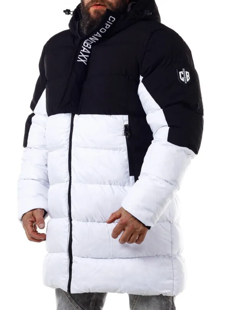 Tofarvet Vinterjakke Fra Cipo &Amp; Baxxforet Jakke I En Længere Model Med To Lommer, Der Kan Lukkes. Den Har En Hætte, Der Kan Reguleres Ved Hjælp Af En Lukkemekanisme, En Ribbet Kant For Enden Af Ærmerne, Samt Et Synligt Logo. Jakken Lukkes Ved Hjælp Af En Lynlås.