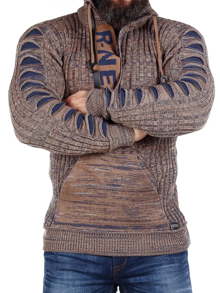 Trøje I Strikket Materiale Fra Rusty Nealhøj Hals Med Snøre Og Lynlås. Åbner Manaven Ses En Strikket Tekst Som En Cool Detalje. Stor Lomme Fortil Og Strikkede Revner I Stoffet På Ærmerne. Findes I Flere Farver!