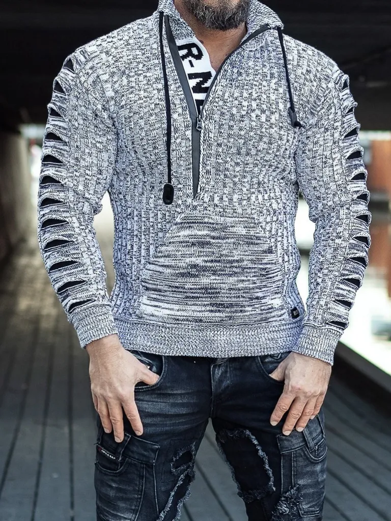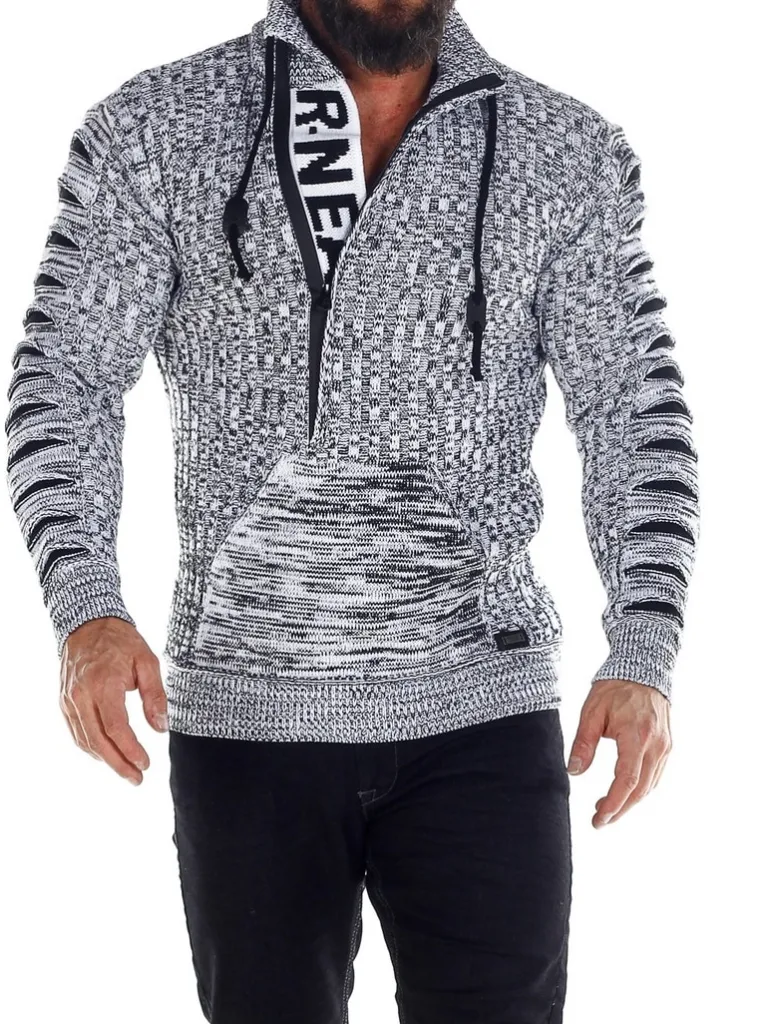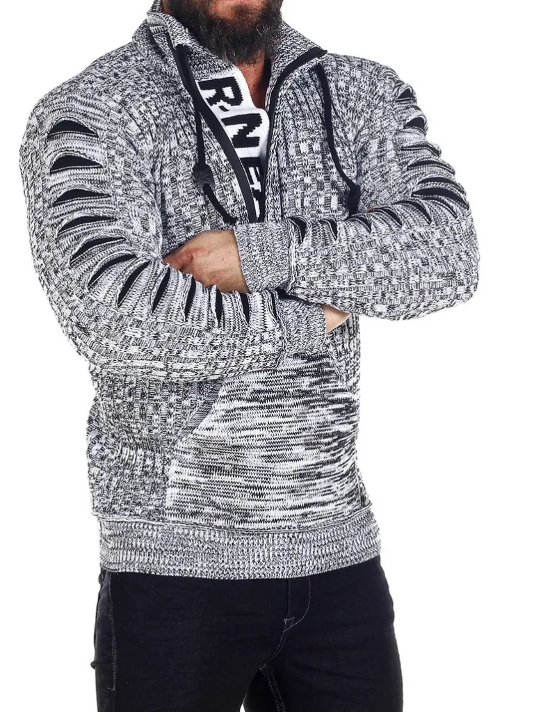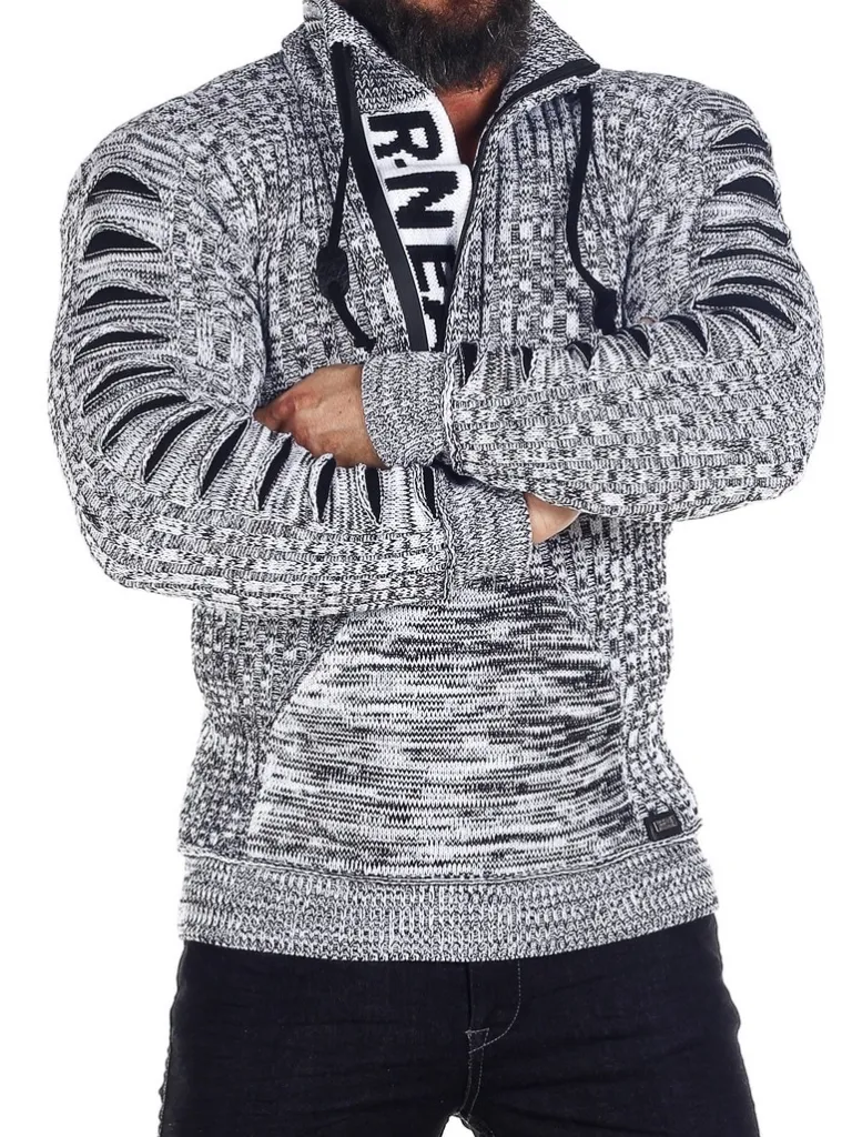Trøje I Strikket Materiale Fra Rusty Nealhøj Hals Med Snøre Og Lynlås. Åbner Manaven Ses En Strikket Tekst Som En Cool Detalje. Stor Lomme Fortil Og Strikkede Revner I Stoffet På Ærmerne. Findes I Flere Farver!