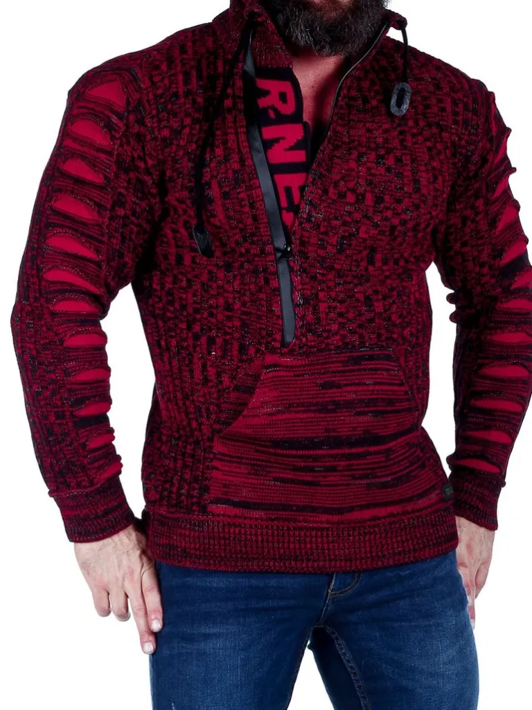 Trøje I Strikket Materiale Fra Rusty Nealhøj Hals Med Snøre Og Lynlås. Åbner Manaven Ses En Strikket Tekst Som En Cool Detalje. Stor Lomme Fortil Og Strikkede Revner I Stoffet På Ærmerne. Findes I Flere Farver!