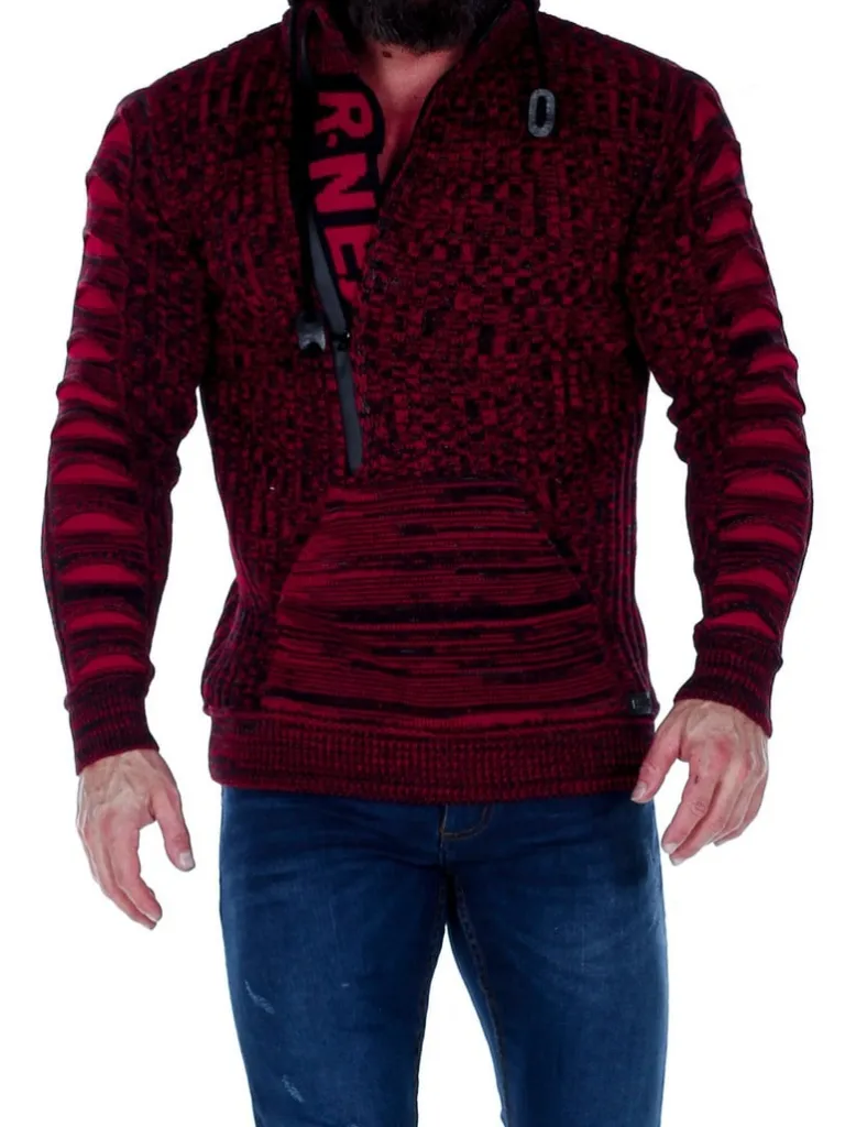 Trøje I Strikket Materiale Fra Rusty Nealhøj Hals Med Snøre Og Lynlås. Åbner Manaven Ses En Strikket Tekst Som En C…