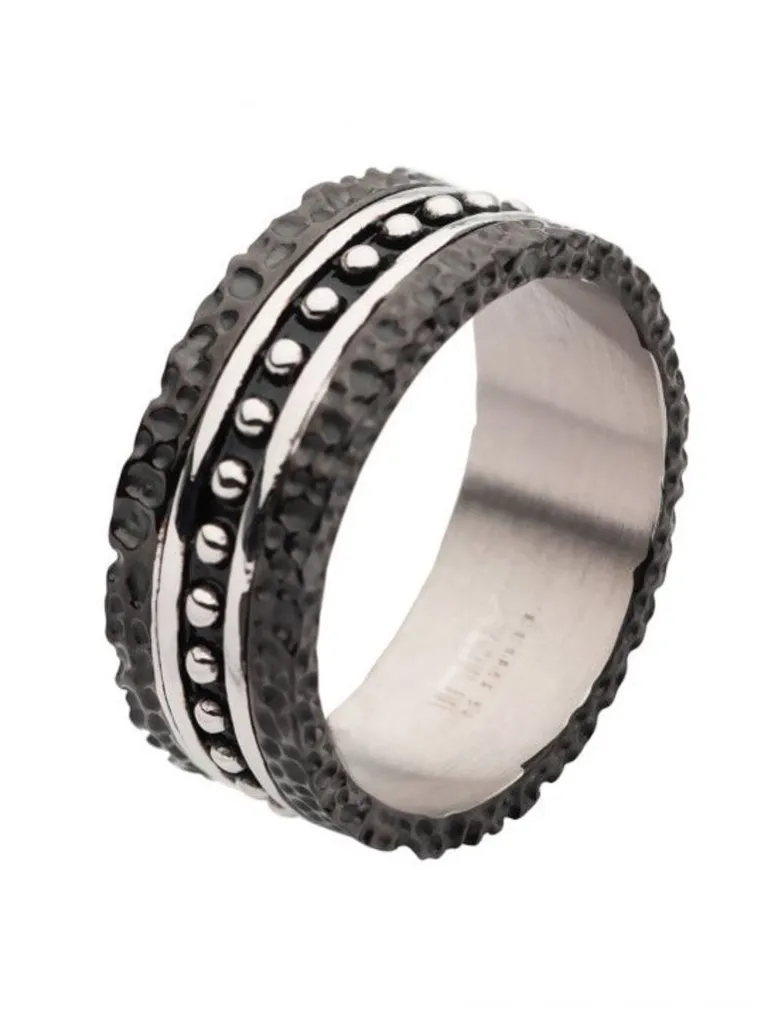 Blacksmith Hammered Ring – Sort/Solv^Inox Hot