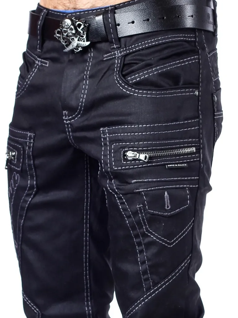 Cool Jeans Fra Cipo &Amp; Baxxsorte Bukser Med Markerede Sømme I En Grafitgrå Farve For Et Hårdere Design. Buksere Er Detaljerede Med Lynlåse Og Skræddersyede Logoer Både Fortil Og Bagpå. De Har En Klassisk Pasfor, 4 Forlommer Og To Baglommer.