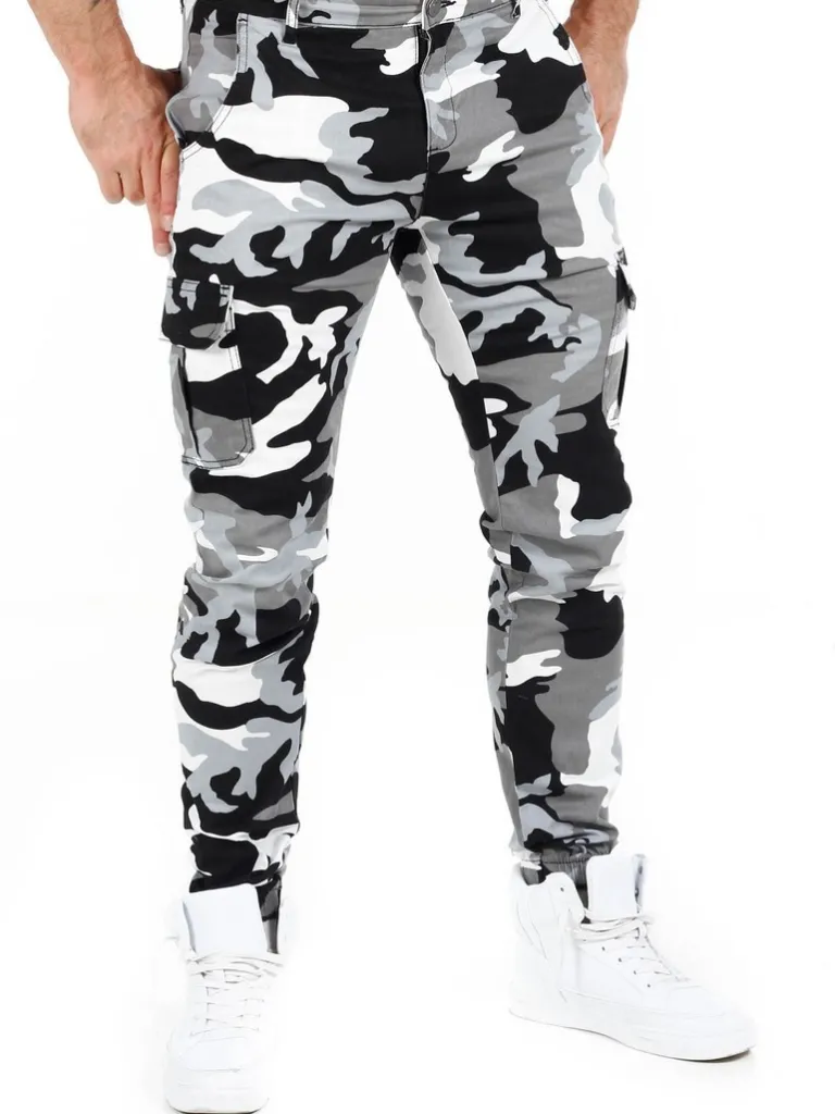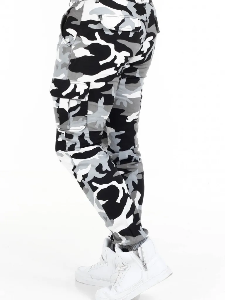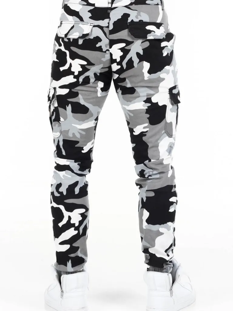 Byxor I Camo Från Urban Classicsmönstrade Byxor I Svart, Vitt Och Grått Med Cargofickor. Bekvämt Material Med Lite S…