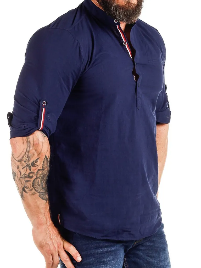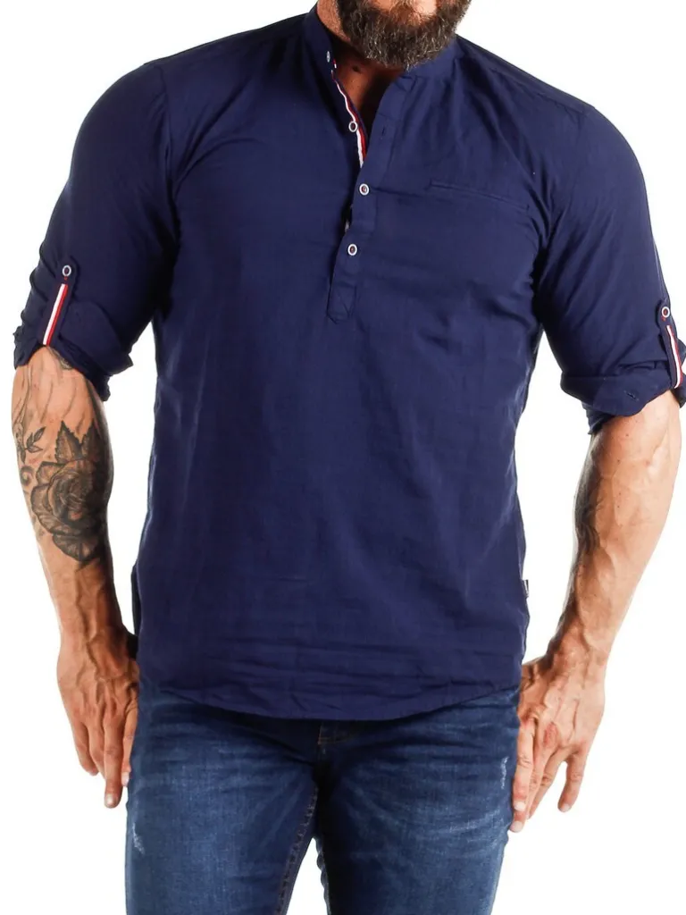 Træk-På-Skjorte I En Blanding Af Hør Fra Carismakølig Skjorte Med Lyse Knapper Og Detaljer I Rød Og Blå. Den Har E…
