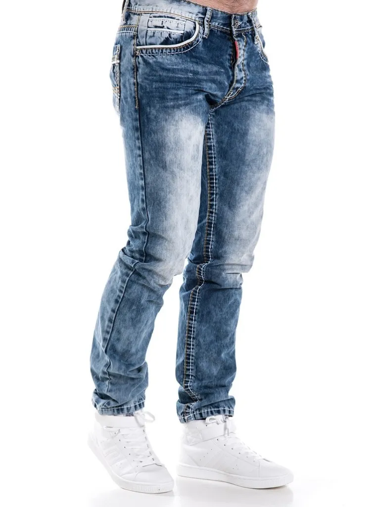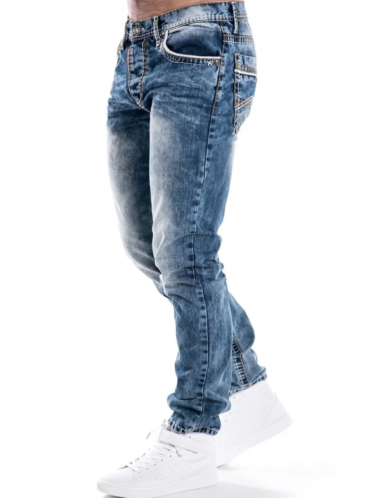 Stenvaskede Jeans Fra Cipo &Amp; Baxxbekvemme Jeans I En Klassisk Pasform Med Grove Sømme I Kontrastfarver. Brun Lap Med Logoet I Linningen, Og Godt Om Rummelige Lommer.