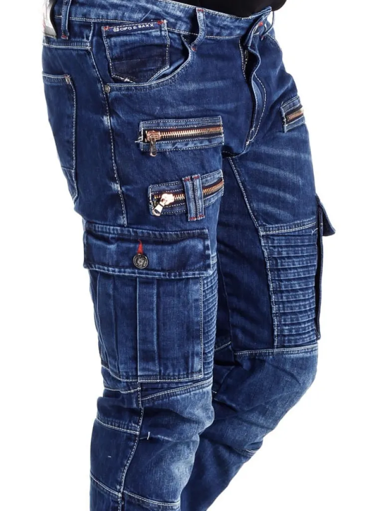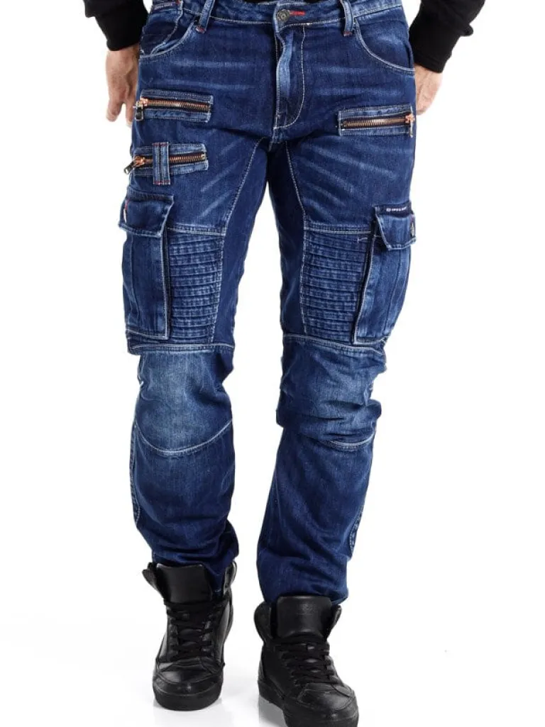 Jeans Med Attitude Fra Cipo &Amp; Baxxcool Bukser I En Mørk Denim Med Et Slidt Look. De Er Designede Med Markerede Sømme, Lynlåse Og Et Riflet Parti. De Har Flere Lommer Og En Klassisk Pasform.