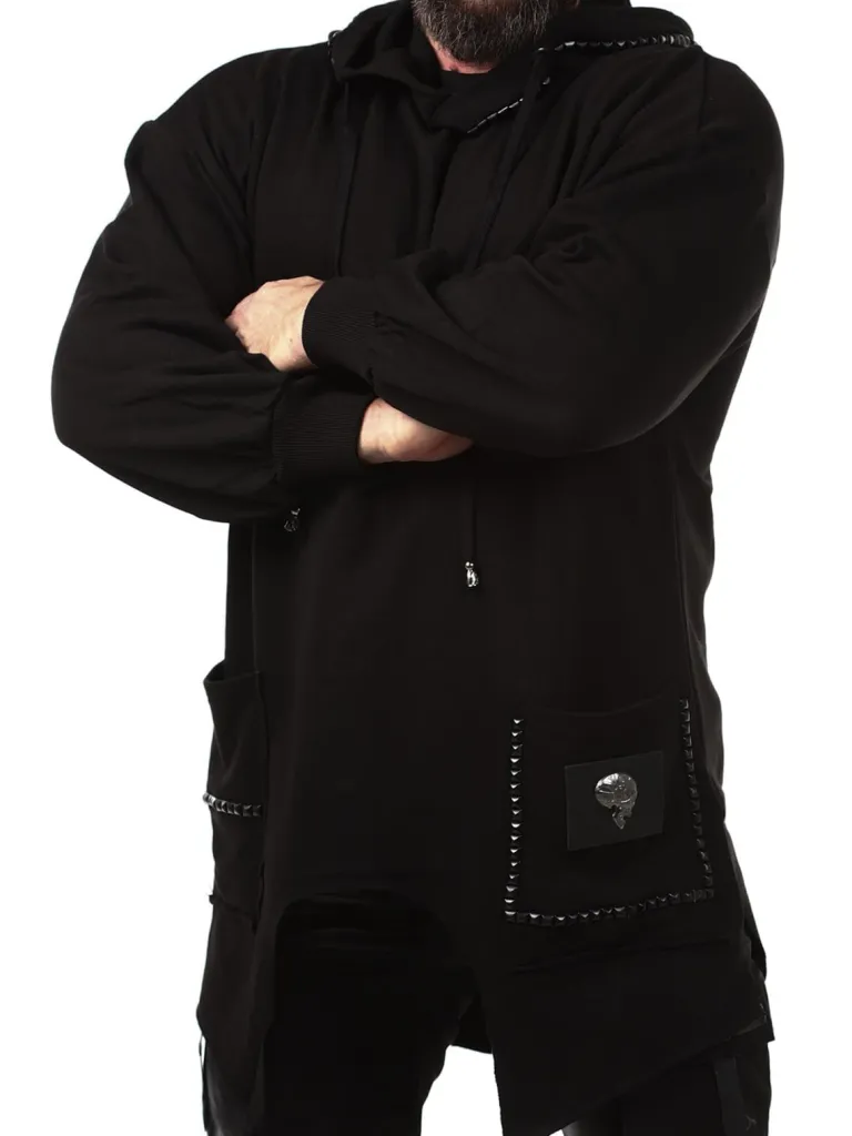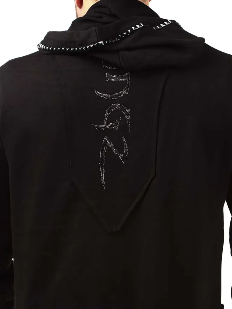 Længere Hoodie Fra Kingzhoodie I En Længere Model Med En Udskæring Forneden. Den Er Detaljeret Med Sorte Nitter, En L…