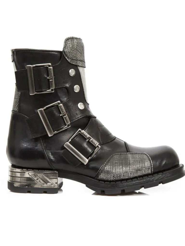 Støvler Fra New Rockholdbare Sko I Et Kvalitets Læder Med Enaftig Sål Og Et Metallisk Design. De Har En Lynlås På I…