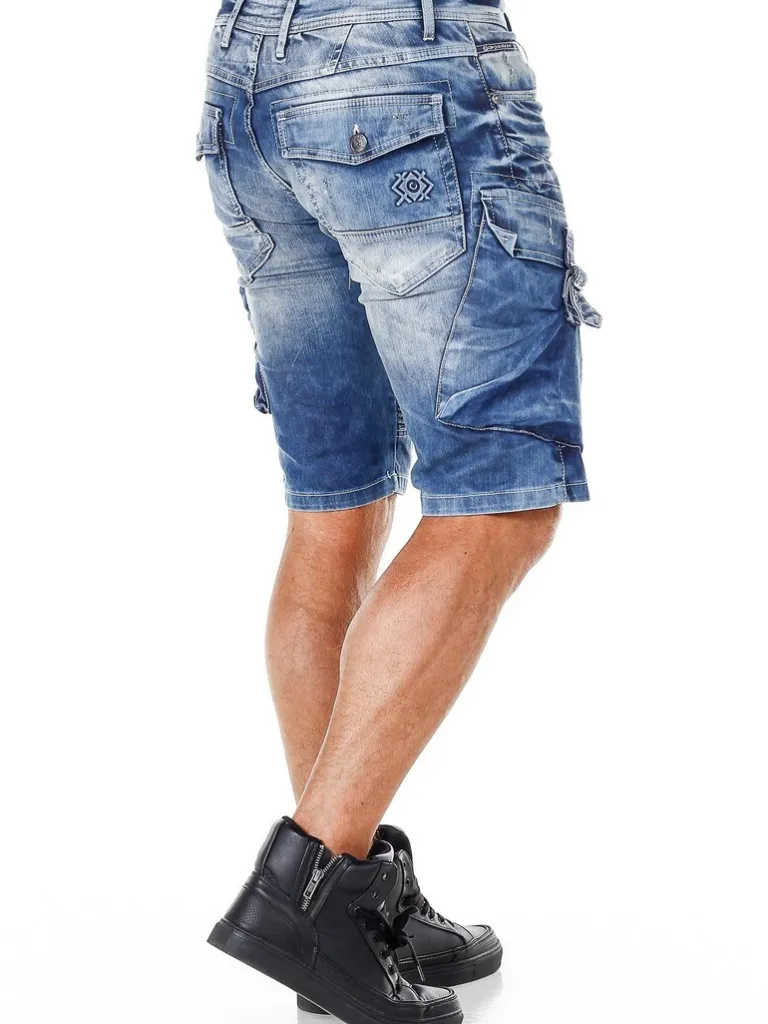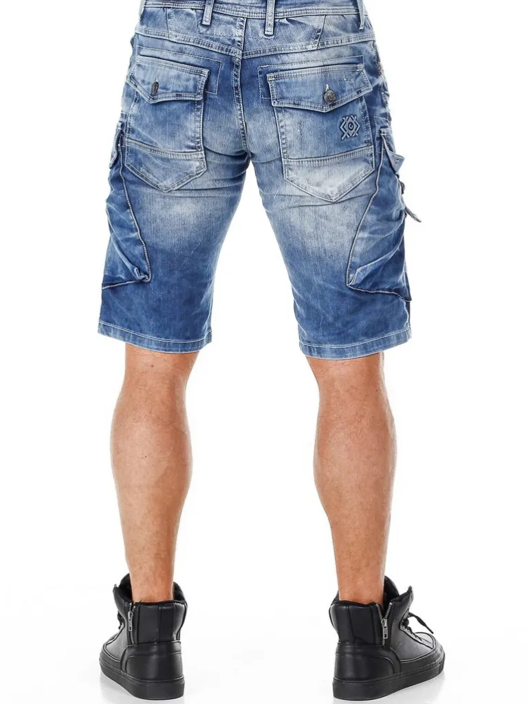 Denimshorts Fra Cipo &Amp; Baxxmellemblå Shorts I Et Blødt, Noget Elastisk Jeansmateriale. Dette Er En Knælang Model Med Flere Lommer, Der Kan Lukkes. Der Findes Et Synligt Logo, Som Kommer I Et 3D-Tryk, Og Hertil Kommer Hvide Sømme.