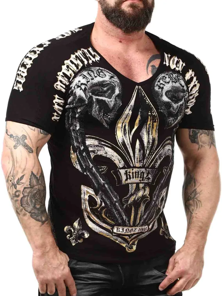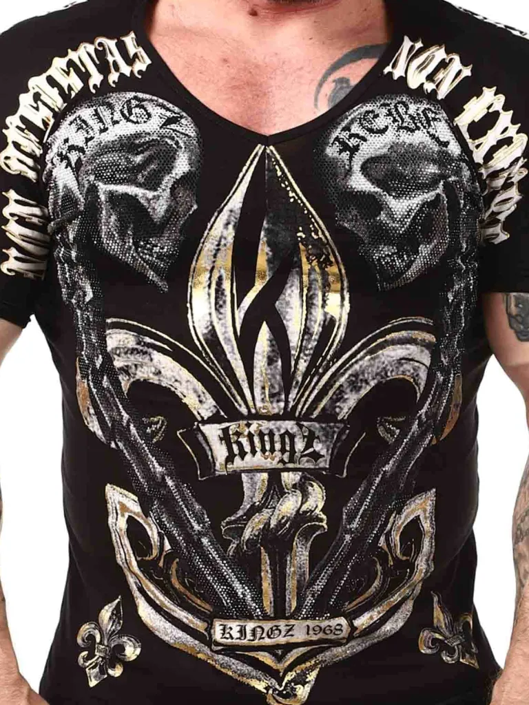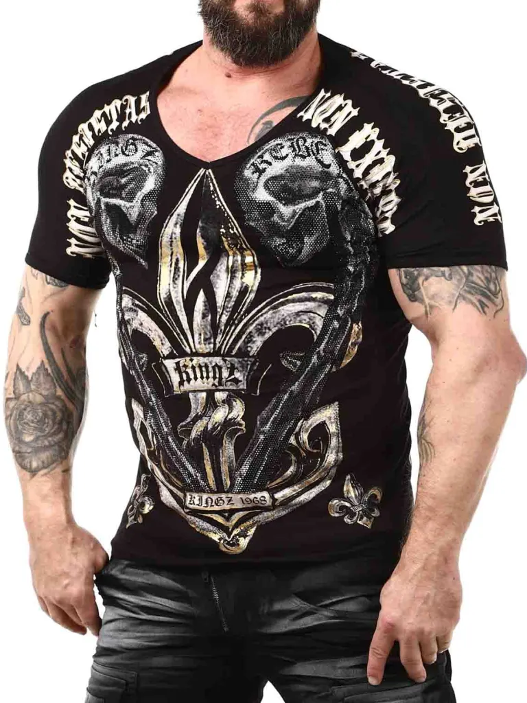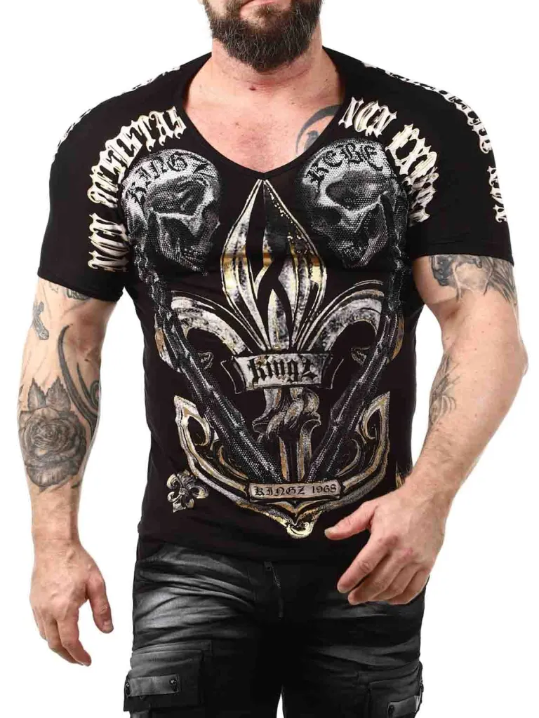 Unikt T-Shirt Fra Kingzt-Shirt Med V-Udskæring, Tryk Og Sten. Fremstillet I Et Behageligt Bomuldsmateriale Med En Slank Pasform. Denne Cool T-Shirt Er For Dig Der Vil Skille Dig Ud Fra Mængden!