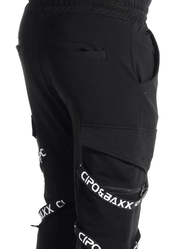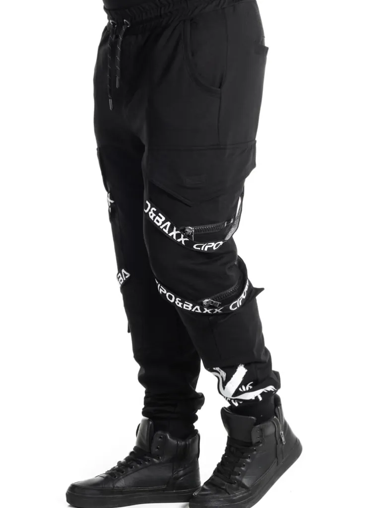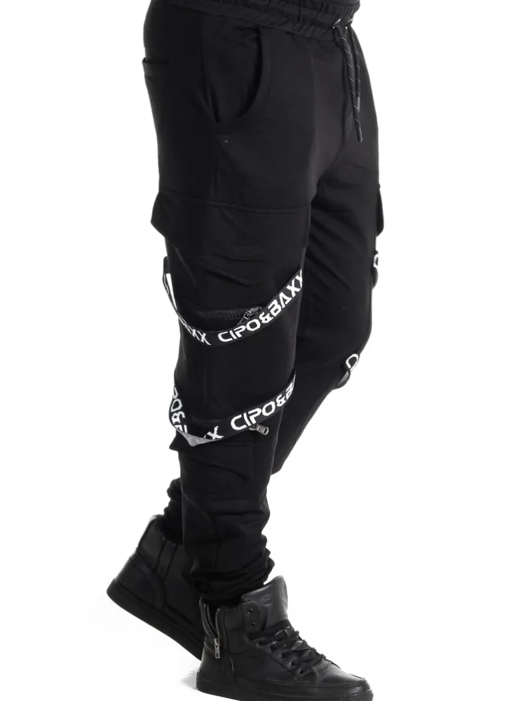 Unikke Joggingbukser Fra Cipo &Amp; Baxxsorte Bukser Med Et Trykt Logo I Hvidt. Disse Bukser Er Flot Designede Med Bånd Af Stof Og Lynlåse. De Er Elastiske, Og Kommer I En Behagelig Med Flere Lommer Og Ribbede Afslutninger Ved Anklerne. Der Findes Også En Matchende Hoodie!