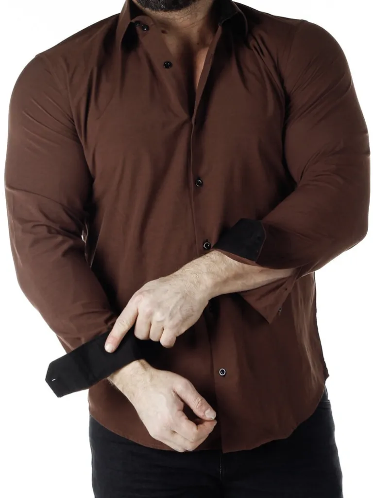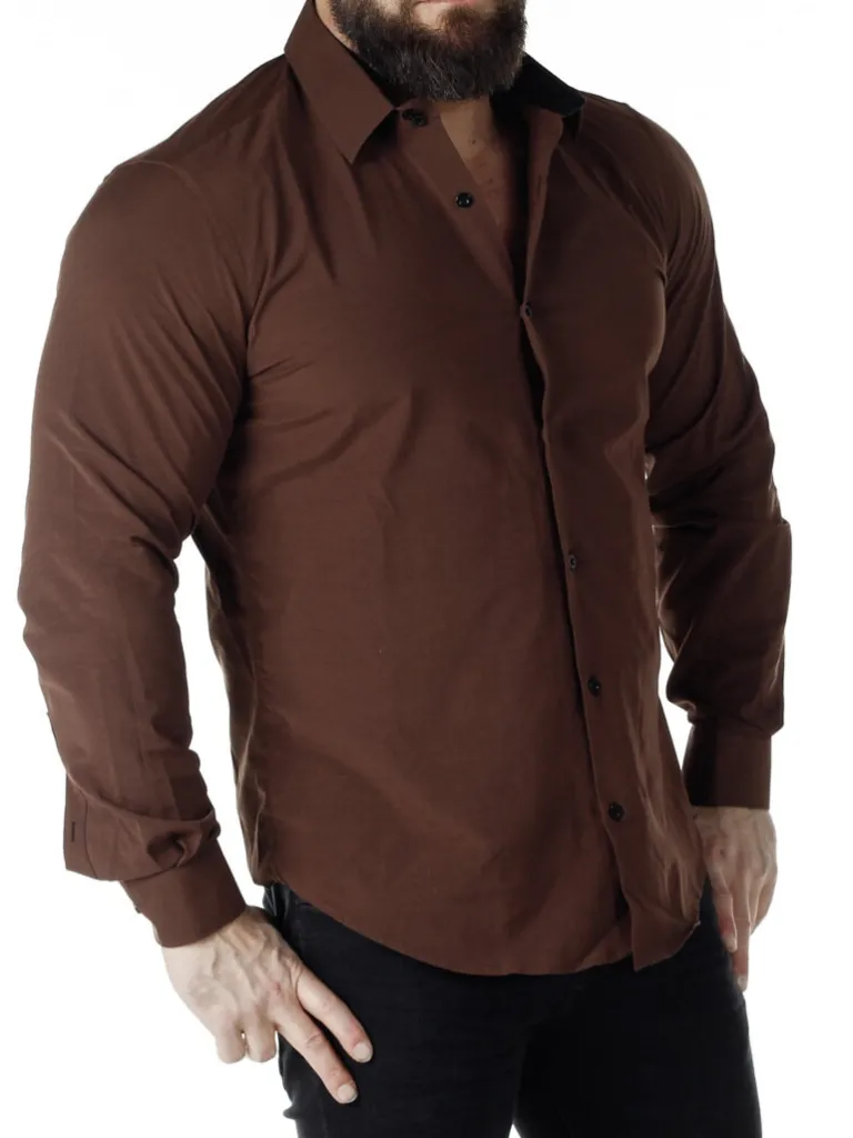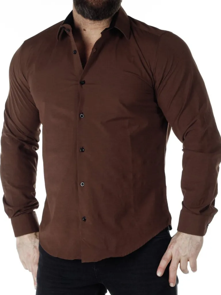 Brun Skjorte I En Slim Fit-Model Fra Rusty Nealbomuldsskjorte I En Bekvem Model, Som Er Noget Stretchig. Brun Base Med Knapper, Indvendigave Og Enderne Af Ærmerne I En Kontrastfarve. En Smallere Model Med Afrundet Linning Forneden Og Med Forstærketave, Som Holder Formen. Findes I Flere Farver!