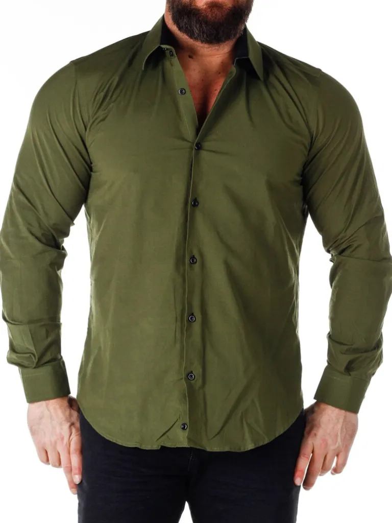 Grøn Skjorte I En Slim Fit-Model Fra Rusty Nealbomuldsskjorte I En Bekvem Model, Som Er Noget Stretchig. Grøn Base Med Knapper, Indvendigave Og Enderne Af Ærmerne I En Kontrastfarve. En Smallere Model Med Afrundet Linning Forneden Og Med Forstærketave, Som Holder Formen. Findes I Flere Farver!