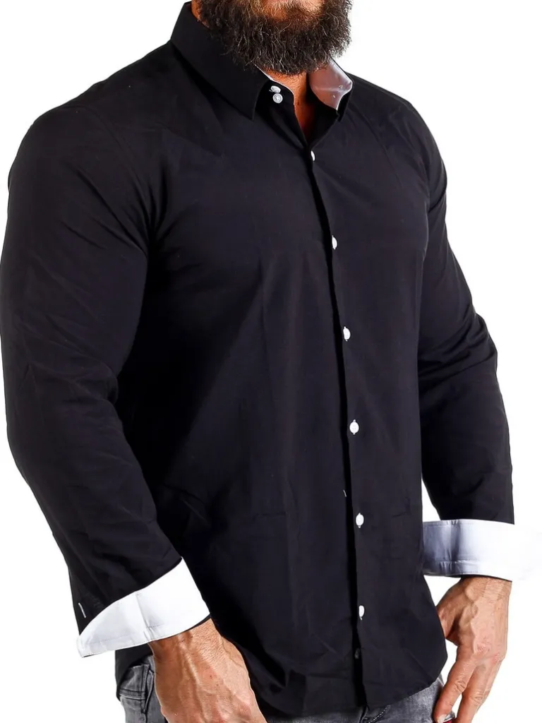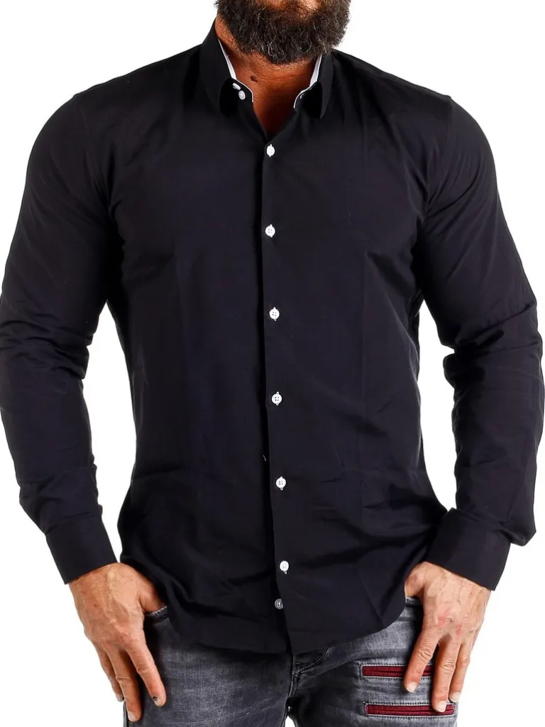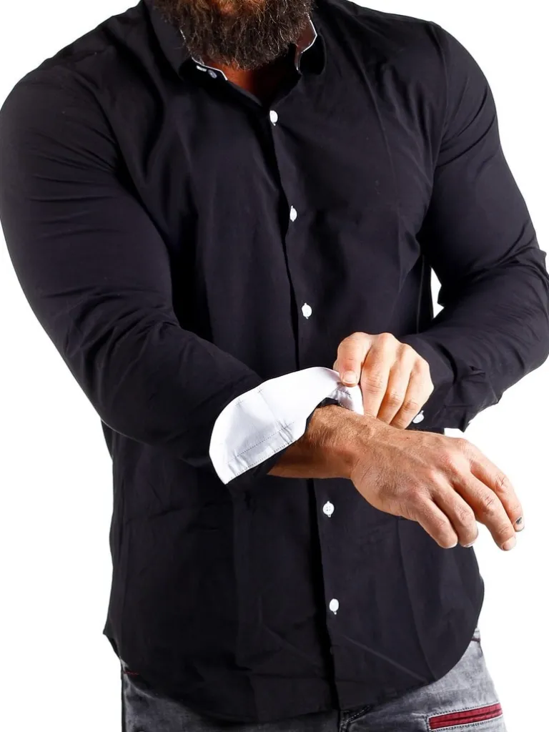 Sort Skjorte I En Slim Fit-Model Fra Rusty Nealbomuldsskjorte I En Bekvem Model, Som Er Noget Stretchig. Sort Base Med Knapper, Indvendigave Og Enderne Af Ærmerne I En Kontrastfarve. En Smallere Model Med Afrundet Linning Forneden Og Med Forstærketave, Som Holder Formen.