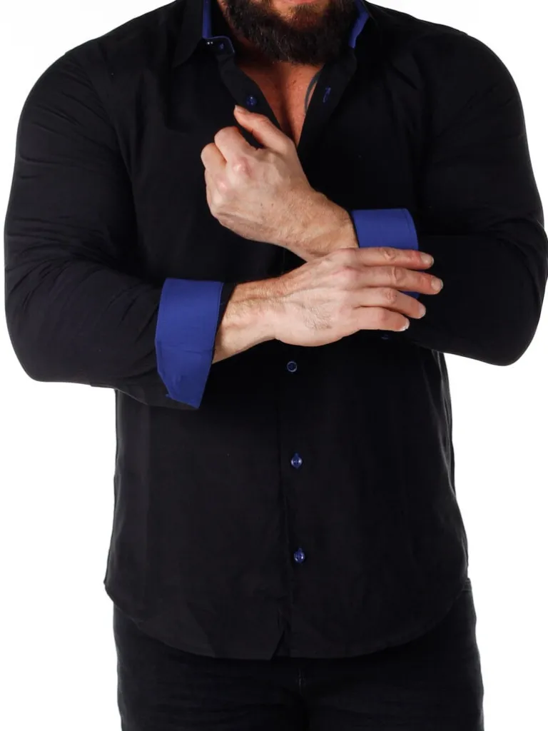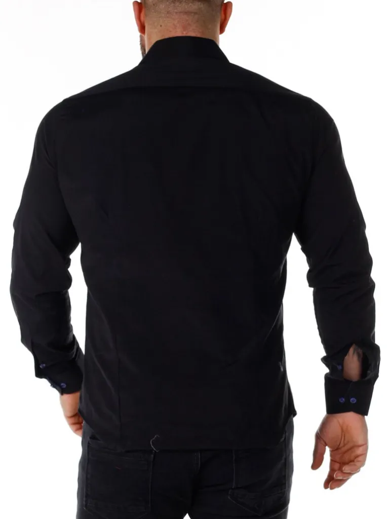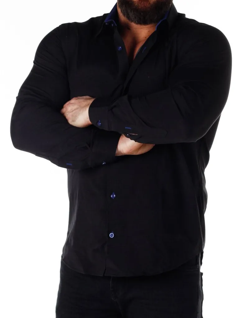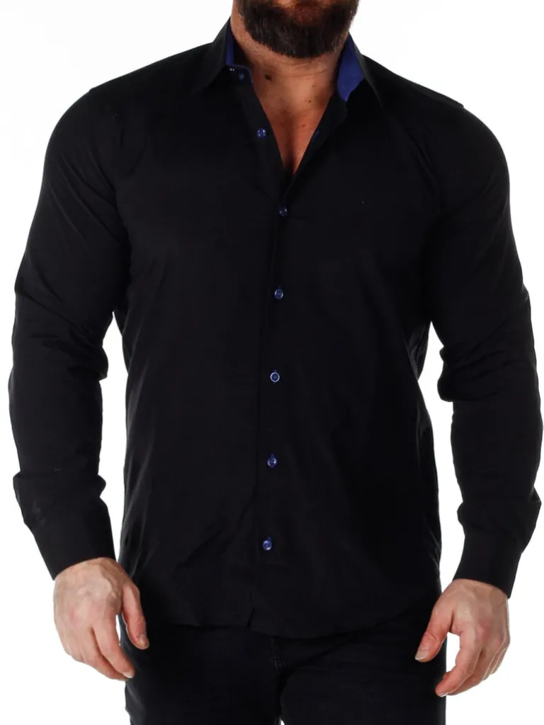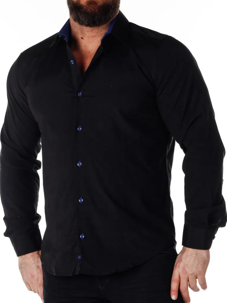 Sort Skjorte I En Slim Fit-Model Fra Rusty Nealbomuldsskjorte I En Bekvem Model, Som Er Noget Stretchig. Sort Base Med Knapper, Indvendigave Og Enderne Af Ærmerne I En Kontrastfarve. En Smallere Model Med Afrundet Linning Forneden Og Med Forstærketave, Som Holder Formen. Findes I Flere Farver!