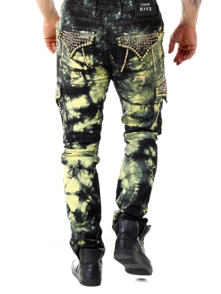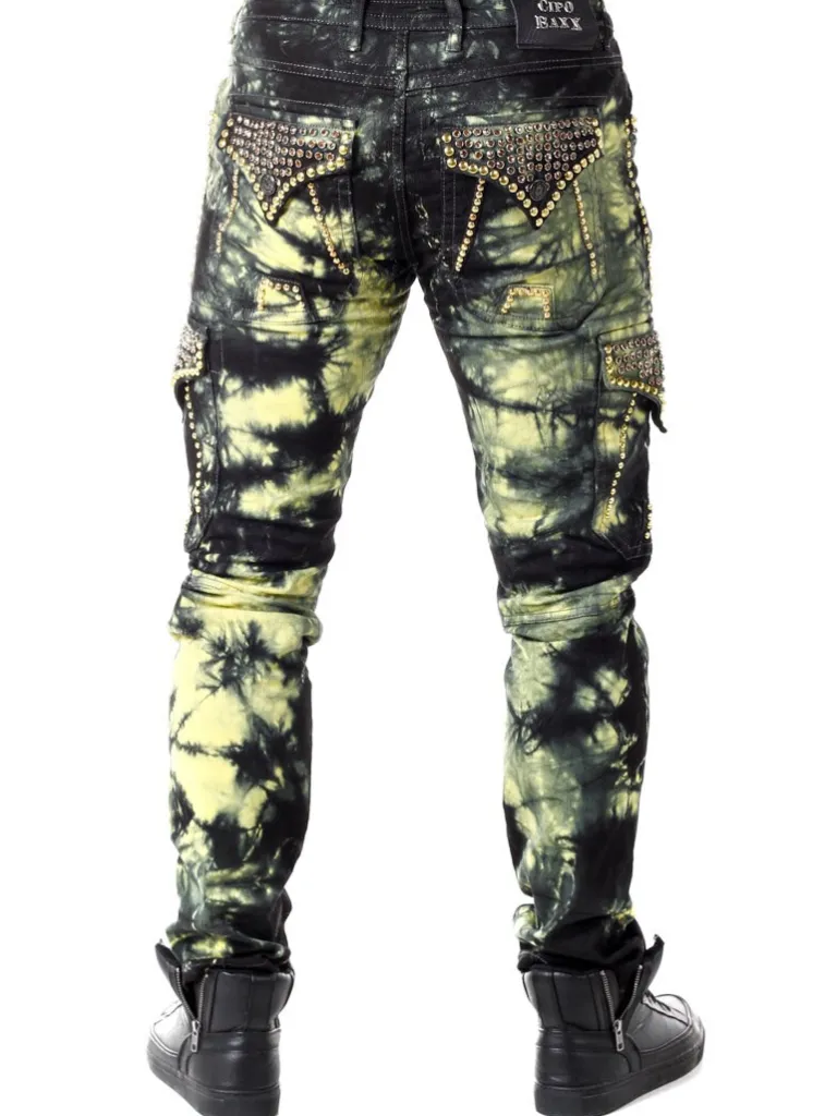 Jeans Med Attitude Fra Cipo &Amp; Baxxbukser I En Batikfarvet Denim Med Nitter Og Grove Sømme. De Har Tre Åbne Lommer …
