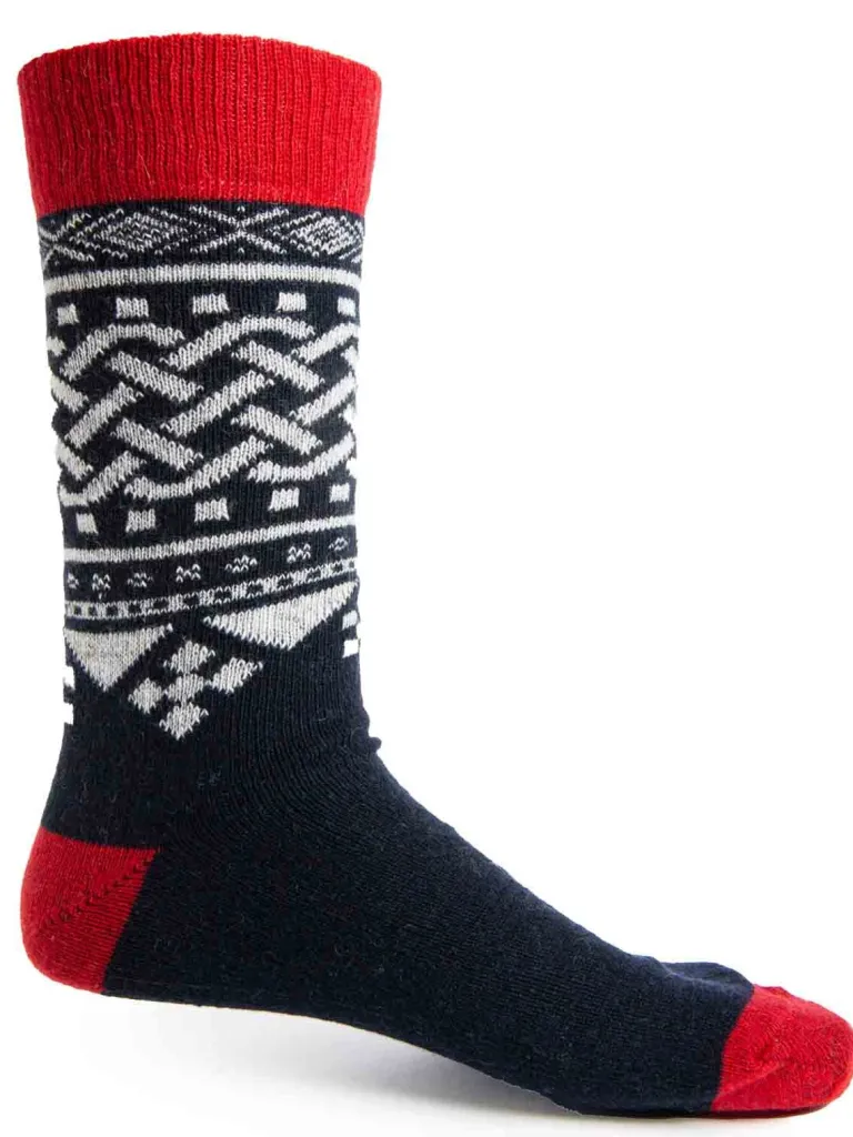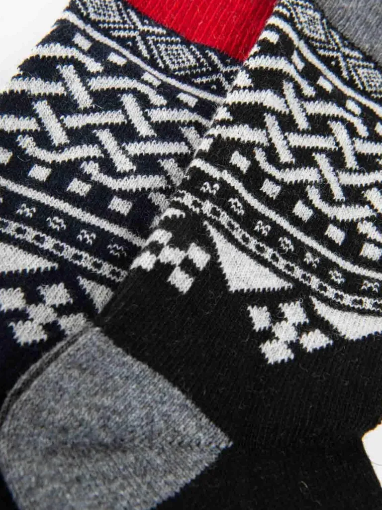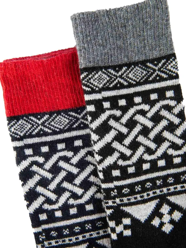 2-Pak Uldstrømper Fra flerfarvede Strømper Med Et Vikingemønster Og Et Ribbet Skaft Foroven. De Er Fremstillede I En Blød Blanding Af Bomuld.
