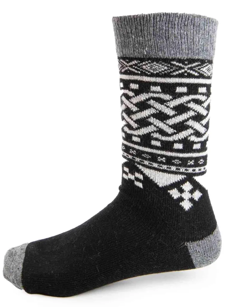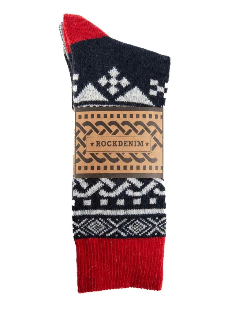 2-Pak Uldstrømper Fraflerfarvede Strømper Med Et Vikingemønster Og Et Ribbet Skaft Foroven. De Er Fremstillede I En B…