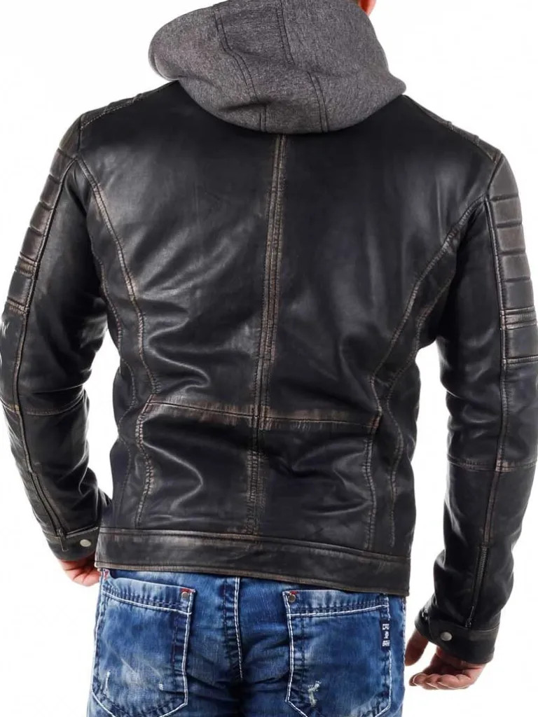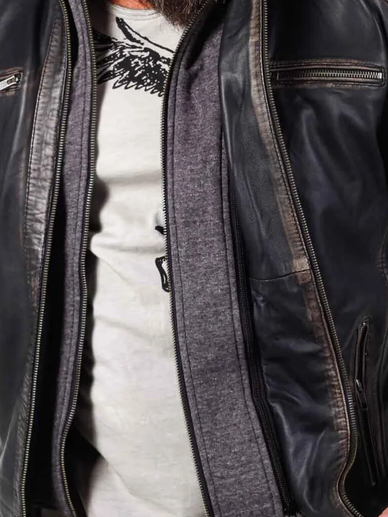 Læderjakke Med Hætte Fra Exclusivejakke I Ægte Læder Med Et Vintage Look. Dette Er En Aftagelig Hætte I Et Blødt Sweatshirtmateriale, Der Er Synligt Langs Med Hele Jakkens Åbning. Polstret Parti På Ærmer Og Fire Lommer Fortil, Der Alle Kan Lukkes, Samt To Inderlommer. Dette Er Etaftigt Materiale, Der Gør, At Den Hænger Flot Påoppen.