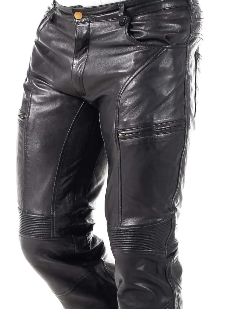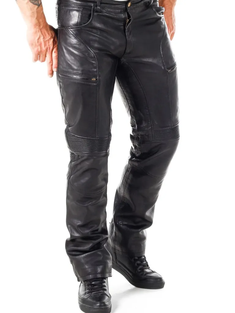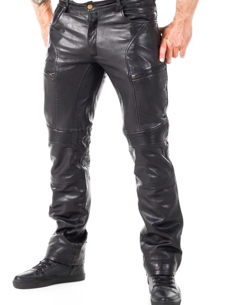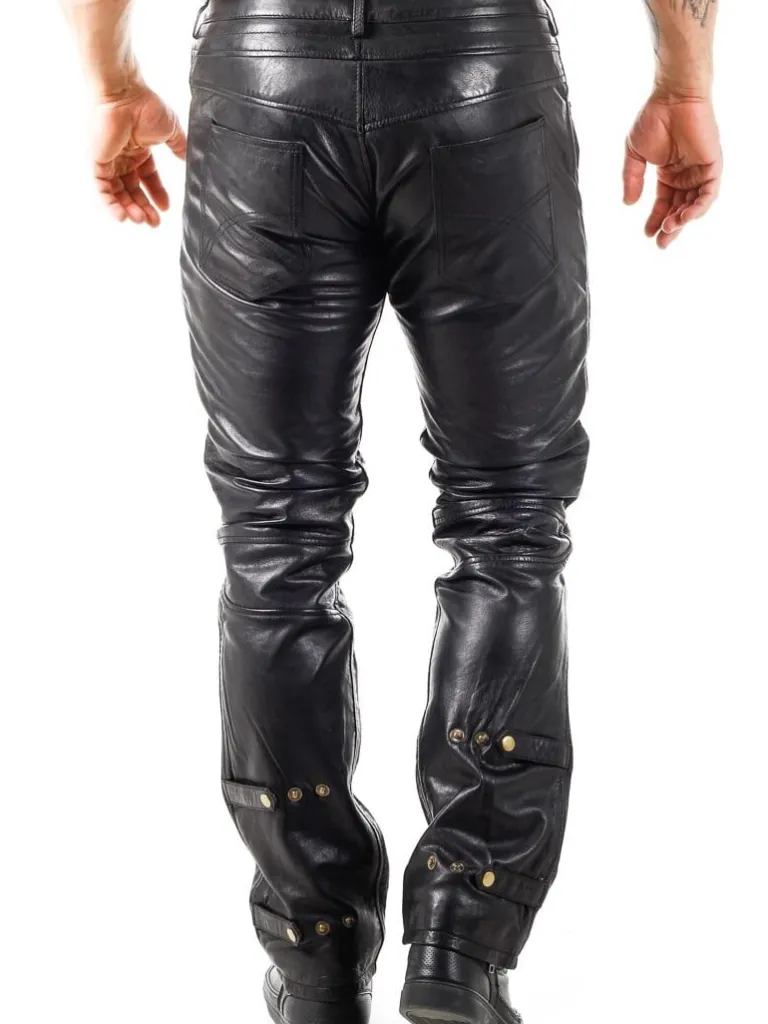 Eksklusive Læderbukser Fra unikke Læderbukser I Et Blødt Og Behageligt Læder. De Har Fem Åbne Lommer Og To Lommer På Lårene, Der Begge Kan Lukkes. Bukserne Har En Justérbar Bredde Ved Anklerne, Remme I Taljen Til Bæltet Og En Elastik Overfor Knæene, Der Gør Dem Ekstra Behagelig At Bevæge Sig I. Disse Bukser Er Specielt Fremstillede Til , Og Du Finder Dem Kun Hos Os!