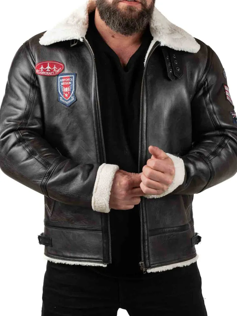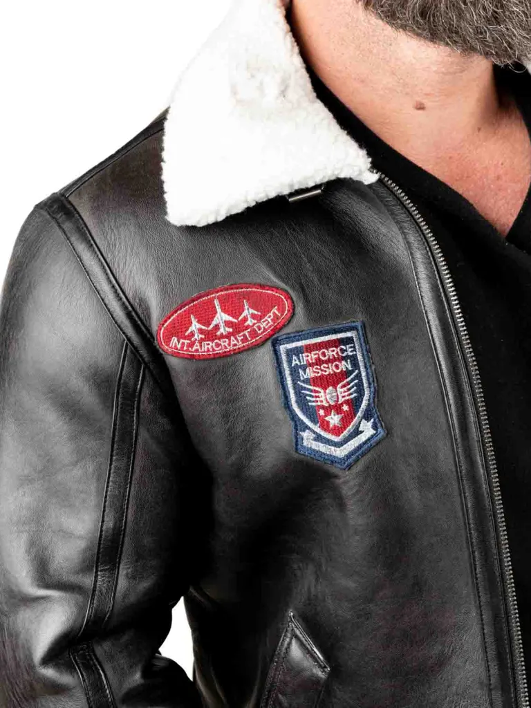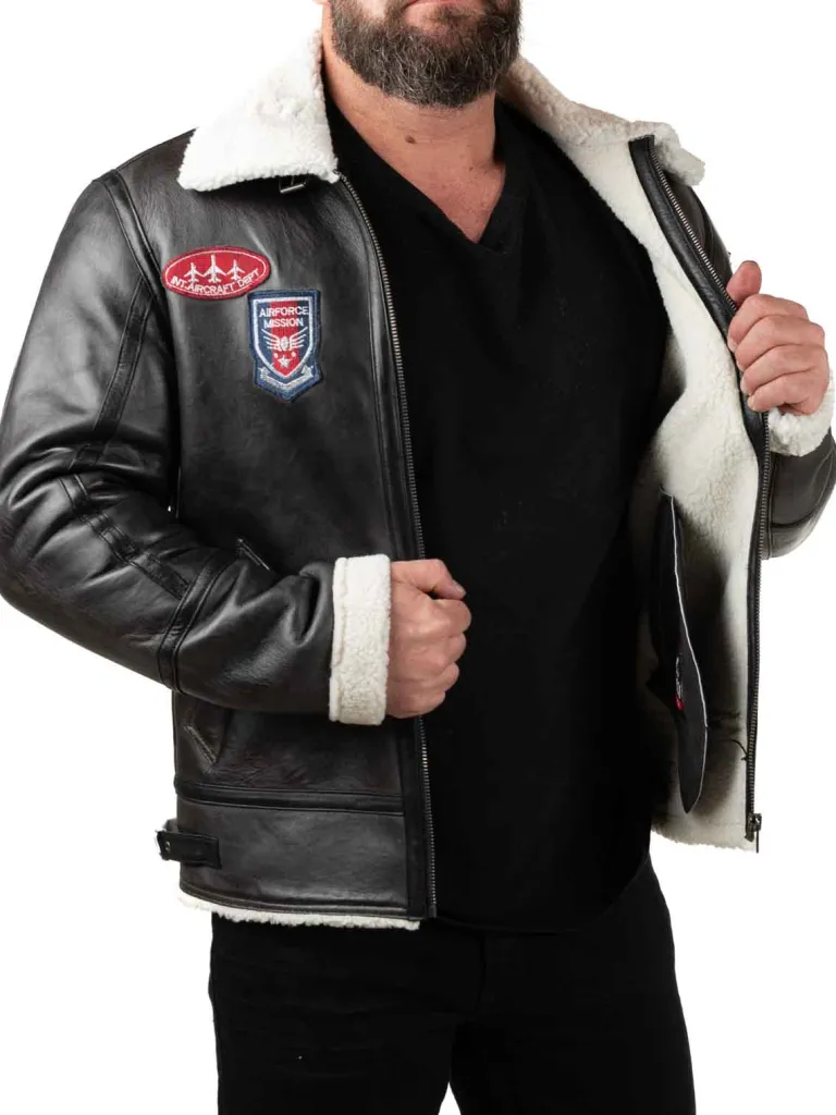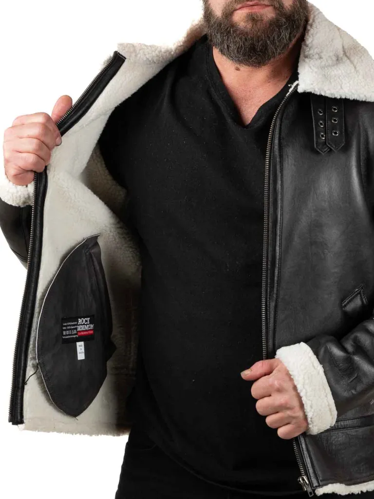 Pilotjakke Fra sort Jakke Med Et Varmende Teddyfor, Der Kan Ses Påaven, For Enden Af Ærmerne Og Ved Linningen Forneden. Jakker Er Detaljeret Med Lapper, To Lommer Fortil Og Spænder Ved Halsen Og I Linningen Forneden. Den Er Fremstillet I Et Blødt Og Behageligt Kvalitetslæder. Denne Jakke Finder Du Kun Hos .