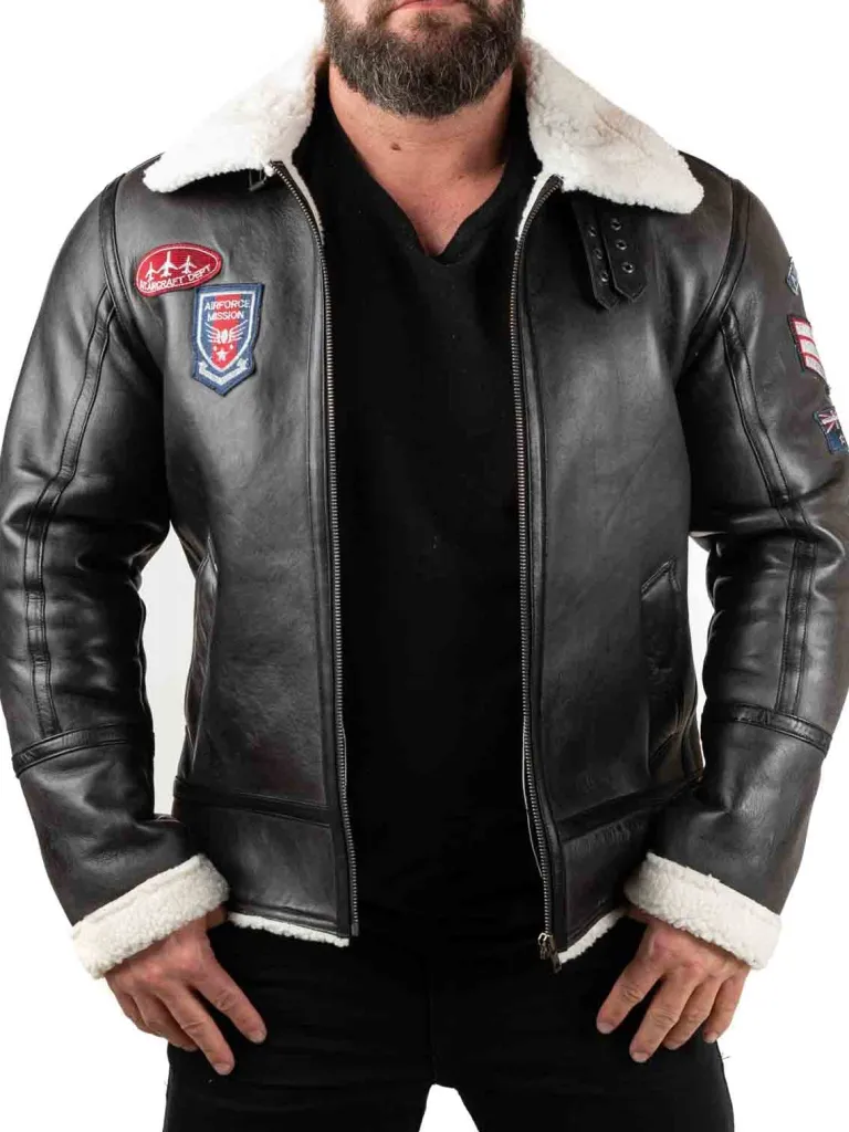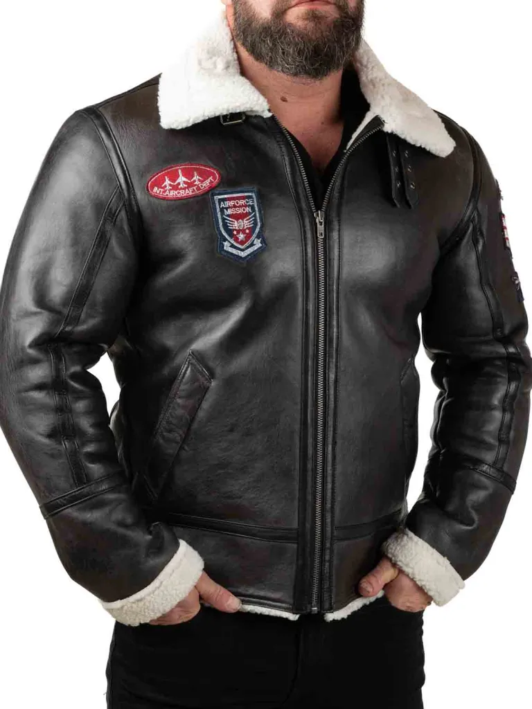 Pilotjakke Fra sort Jakke Med Et Varmende Teddyfor, Der Kan Ses Påaven, For Enden Af Ærmerne Og Ved Linningen Forneden. Jakker Er Detaljeret Med Lapper, To Lommer Fortil Og Spænder Ved Halsen Og I Linningen Forneden. Den Er Fremstillet I Et Blødt Og Behageligt Kvalitetslæder. Denne Jakke Finder Du Kun Hos .