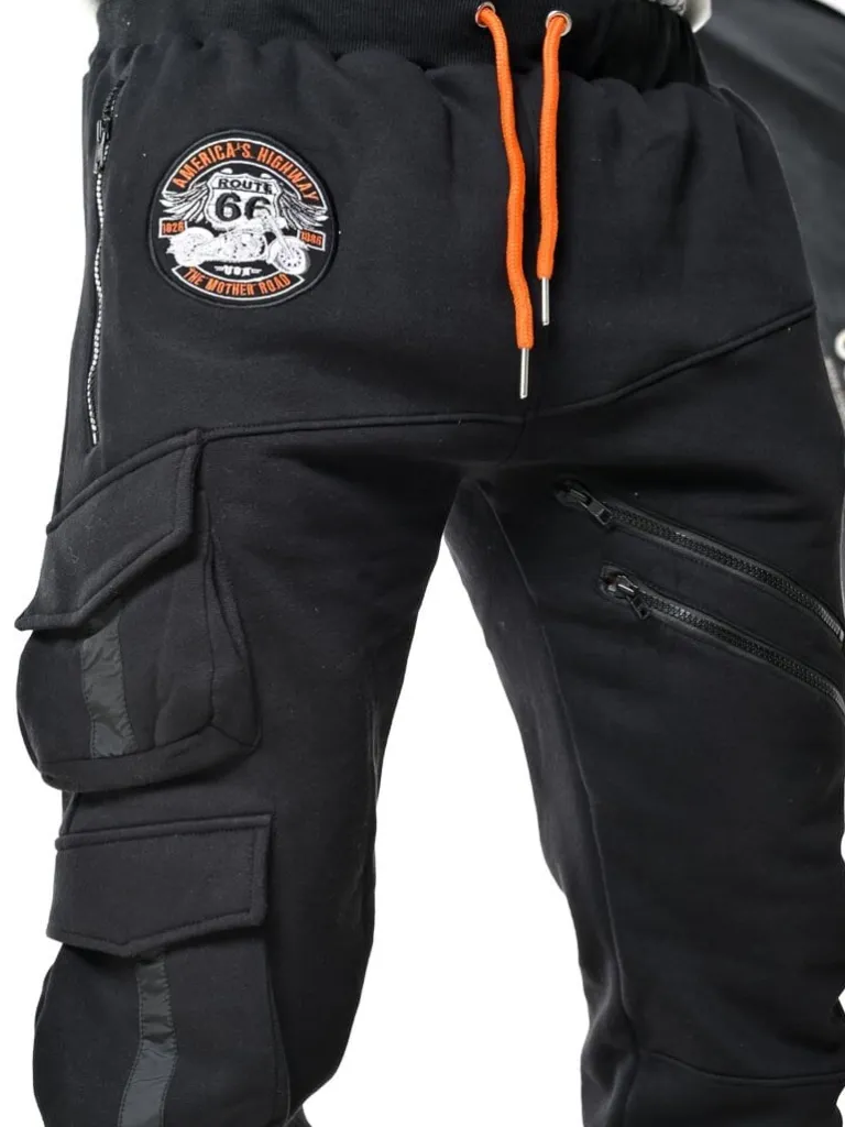 Eksklusive Joggingbukser Fra bløde Og Behagelige Bukser I En Klassisk Model Af Joggingbukser, Hvor Benene Bliver Smallere Ned Mod Anklerne. Den Har En Bred Elastik I Taljen Og Nederst Ved Anklerne. Der Findes Cargolommer På Højre Lår, Samt Lommer På Begge Lår, Som Alle Har Lynlåse. Der Findes Et Fastsyet Logo Øverst Ved Højre Lår, Og Hertil Kommer En Orange Snor I Taljen.