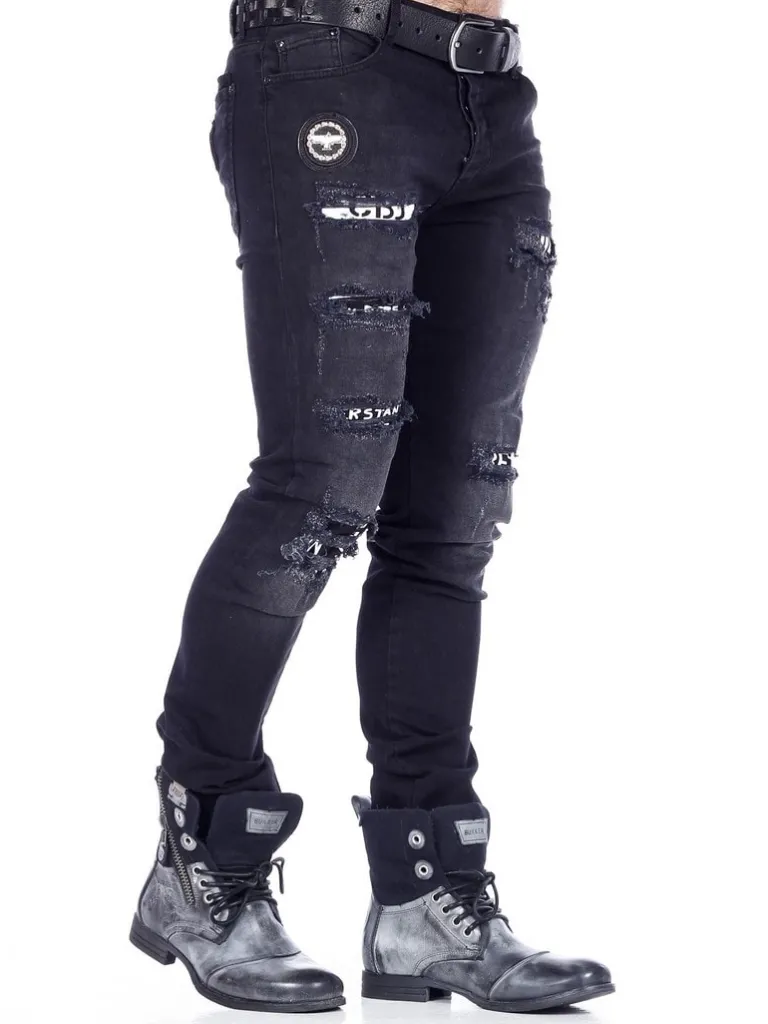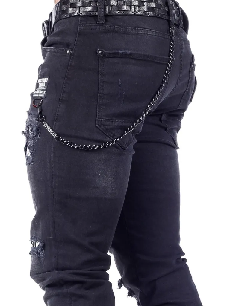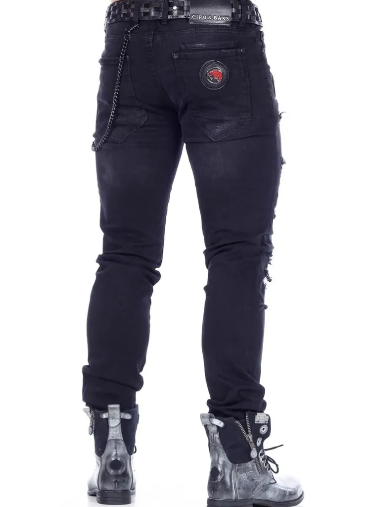 Rå Jeans I En Slim Model Fra Cipo &Amp; Baxxbukser I En Blød Denim Med Aftagelig Kæde Og Rummelige Lommer. Hårdt Design Med Slitager, Revner, Kontraststof Og Lapper Af Stof.