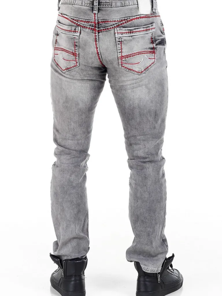 Ljusgrå Jeans Från Rusty Neal. Byxan Har Grova Röda Kontrastsömmar Som Ger Den En Unik Design. Slitstarka Kvalitetsj…