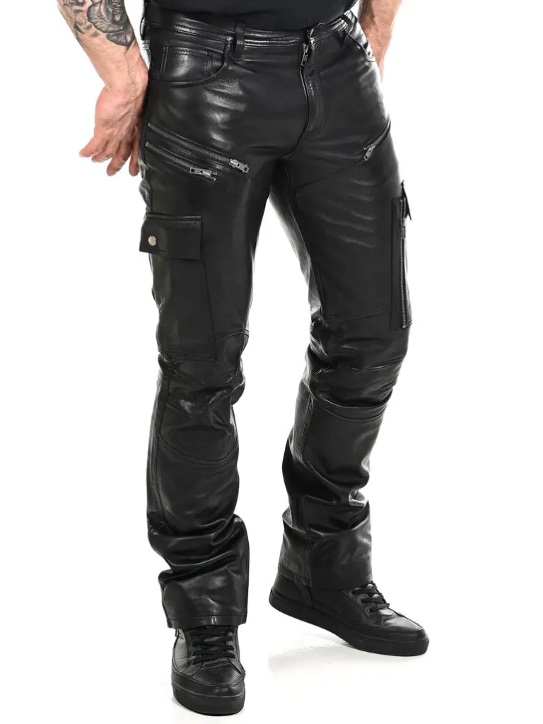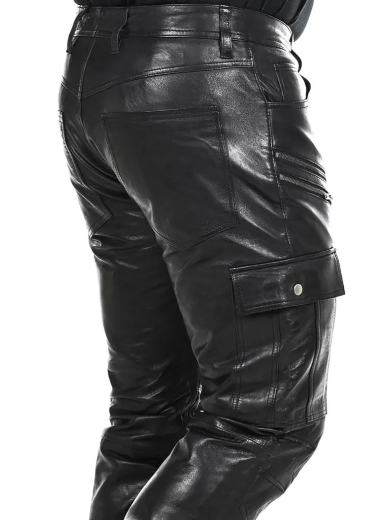 Skinnbyxor Med Cargofickor Frånbyxor I Mjukt Och Behagligt Läder Med Raka Ben. De Har Bälteshällor I Midjan, Dragked…