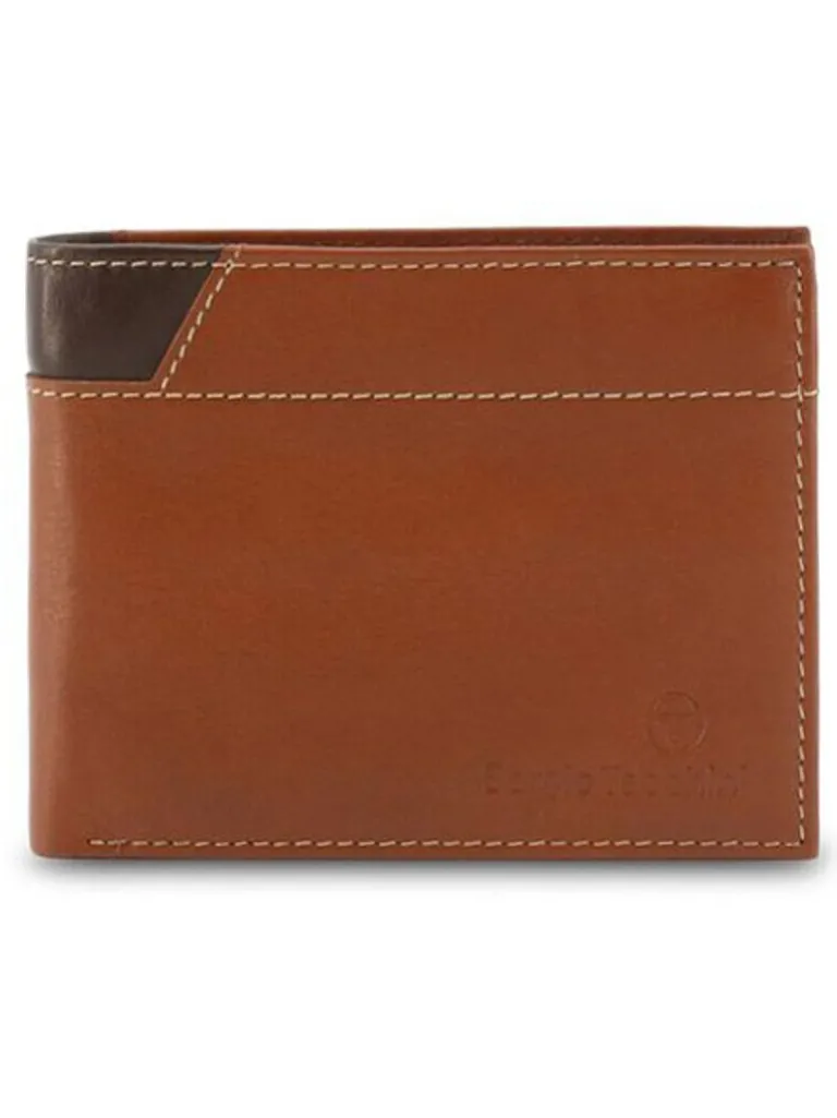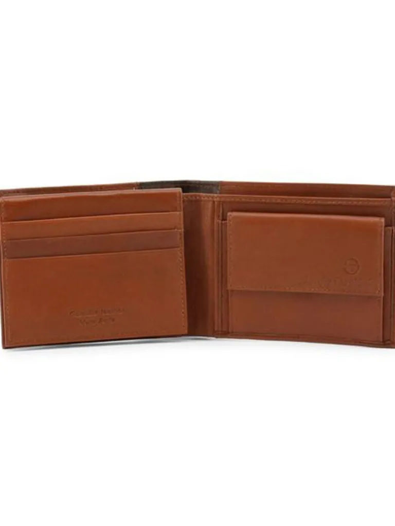 Tegnebog Fra Sergio Tacchinibrun Tegnebok I Ægte Læder Med Lomme Til Kort, Sedler Og Mønter. Hertil Findes Et Logo Fortil.
